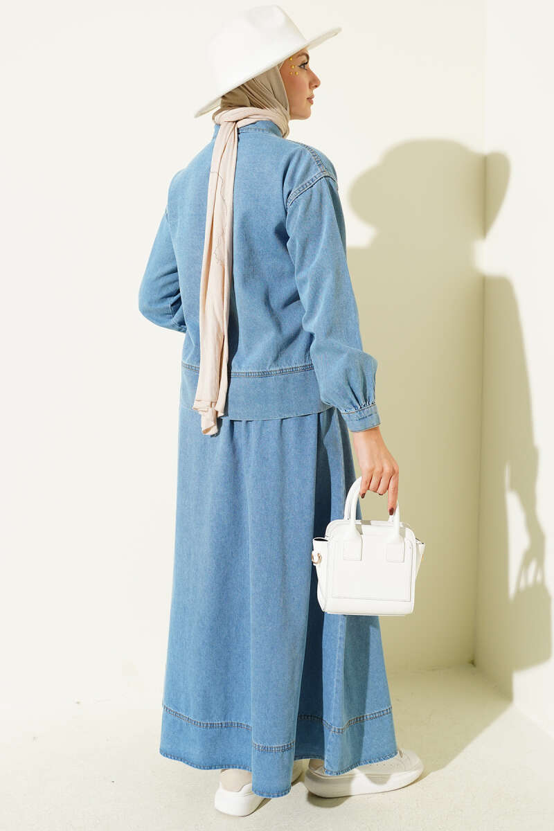 Çift Cepli Fermuarlı Etekli Kot Takım Mavi