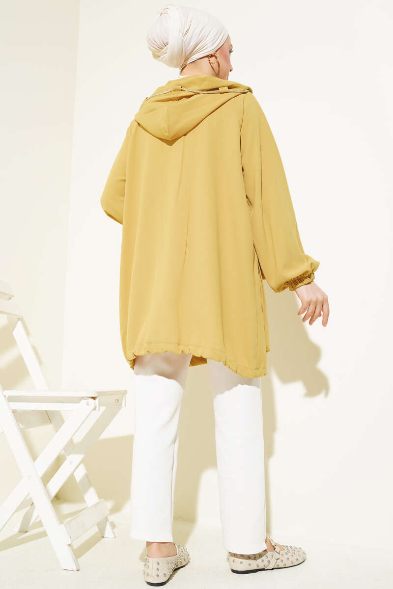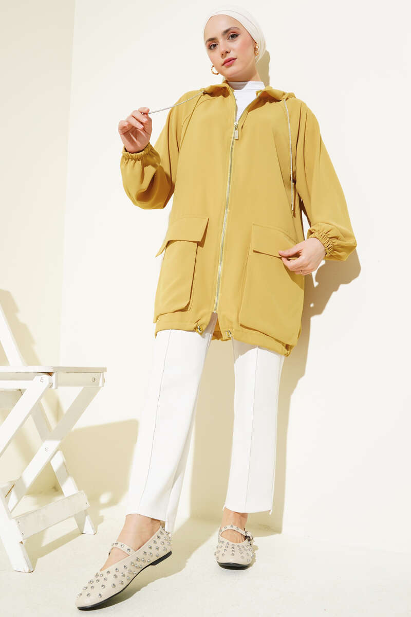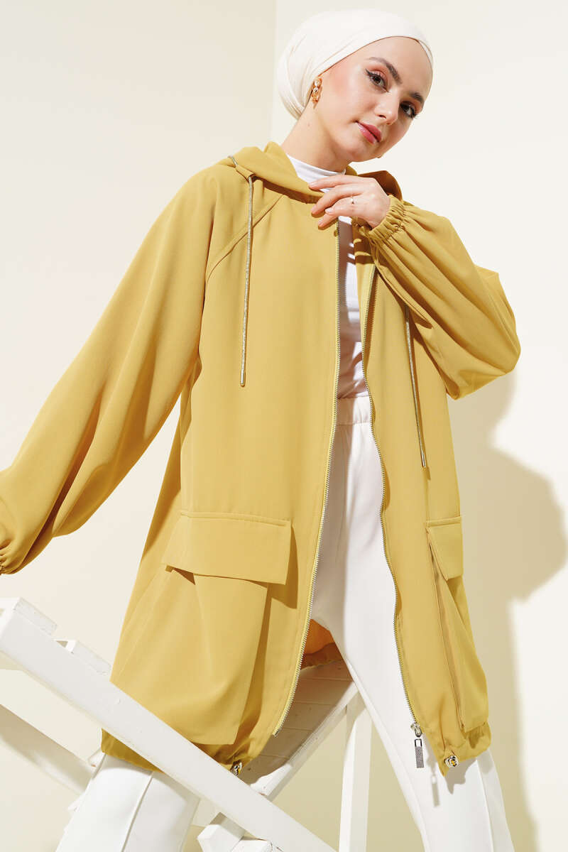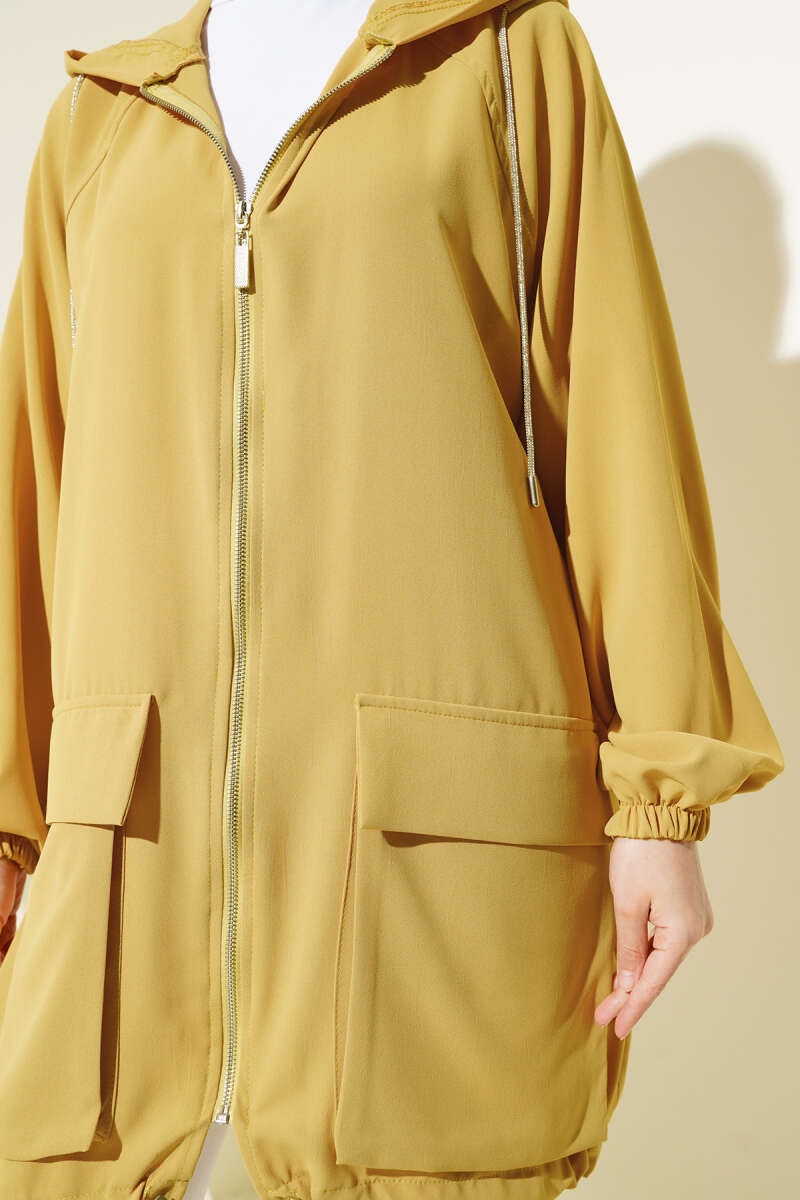 Çift Cepli Fermuarlı Hırka Yağ Yeşili