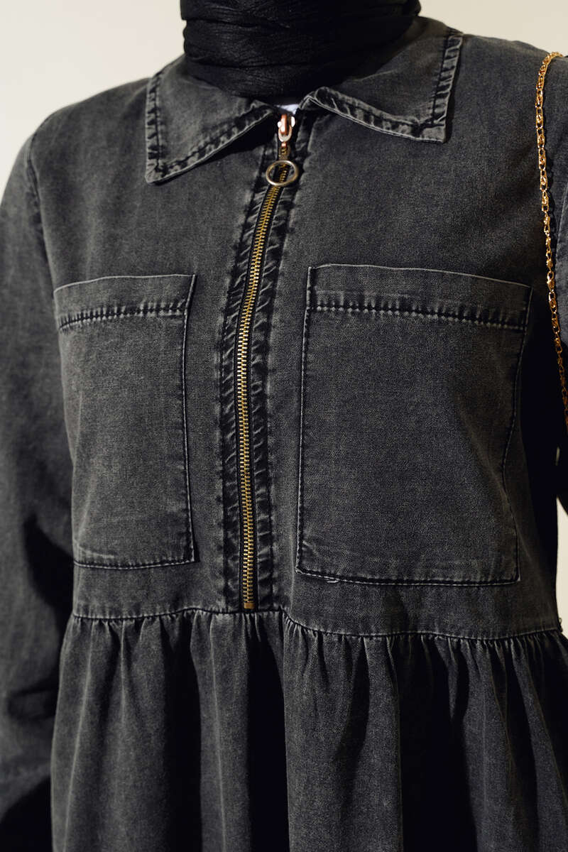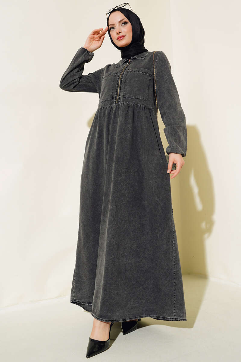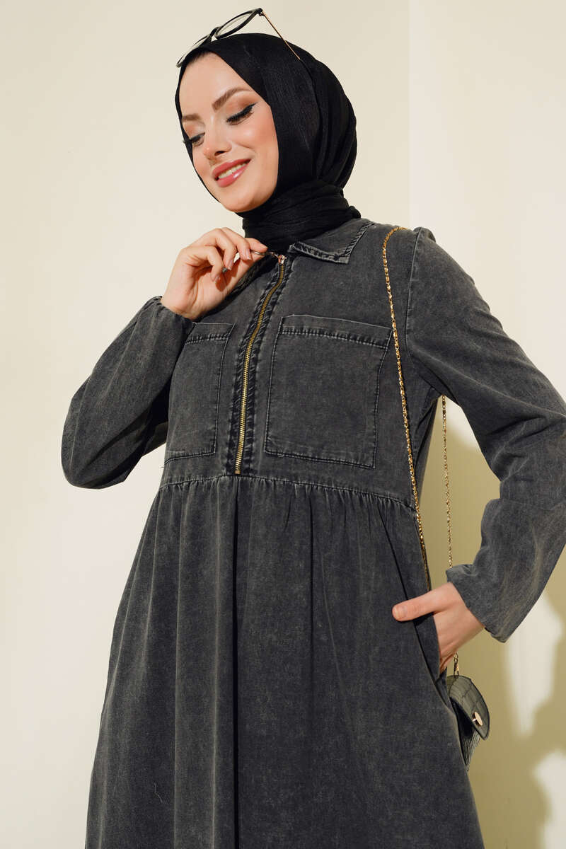 Yeni sezon kot elbise modelimiz sizlerle beraber. Önü yarıya kadar fermuarlıdır. Kloş modeldir. İki adet göğüs cebi bulunmaktadır. İki adet yan cebi bulunmaktadır. Kot elbisemizin renk seçeneği mevcuttur.
