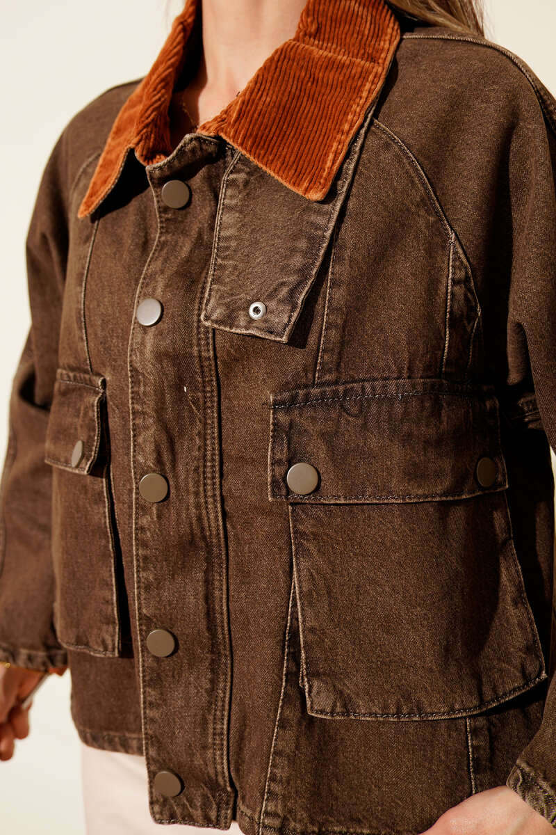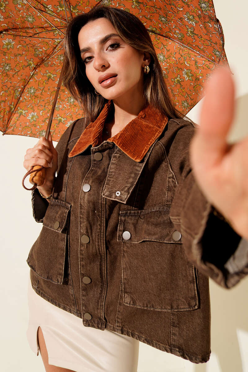 Cep Kapaklı Çıtçıt Düğmeli Kısa Ceket Füme
