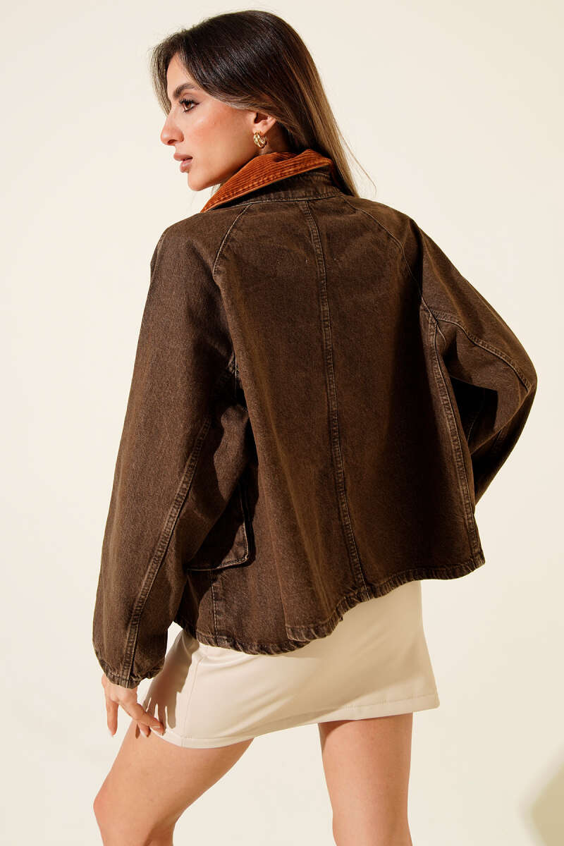 Kadife Yakalı Kısa Kot Ceket Lacivert