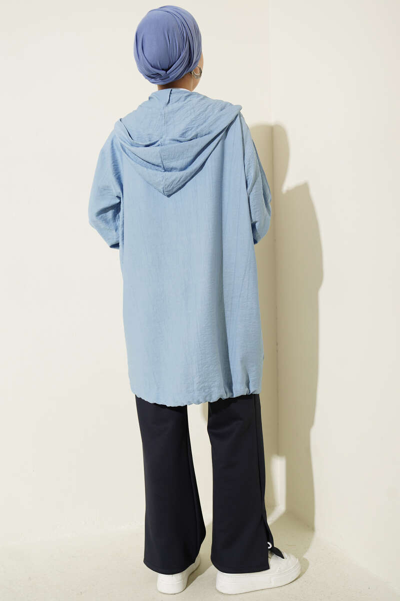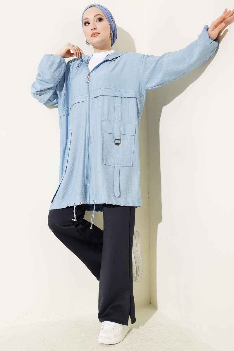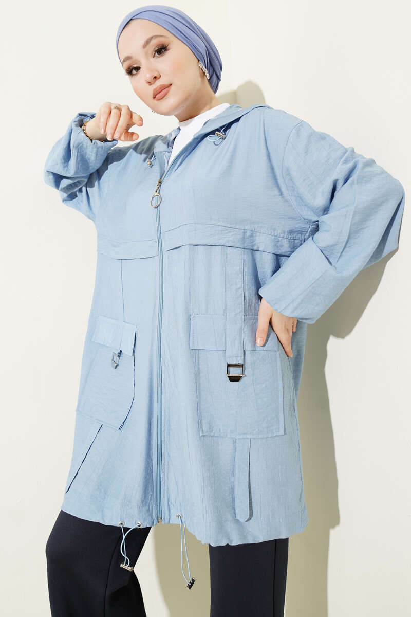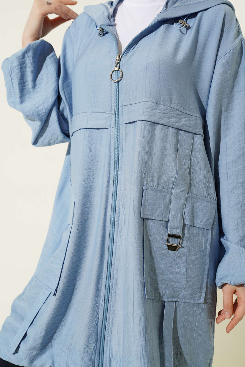 Çift Cepli Kapüşonlu Kap Mavi