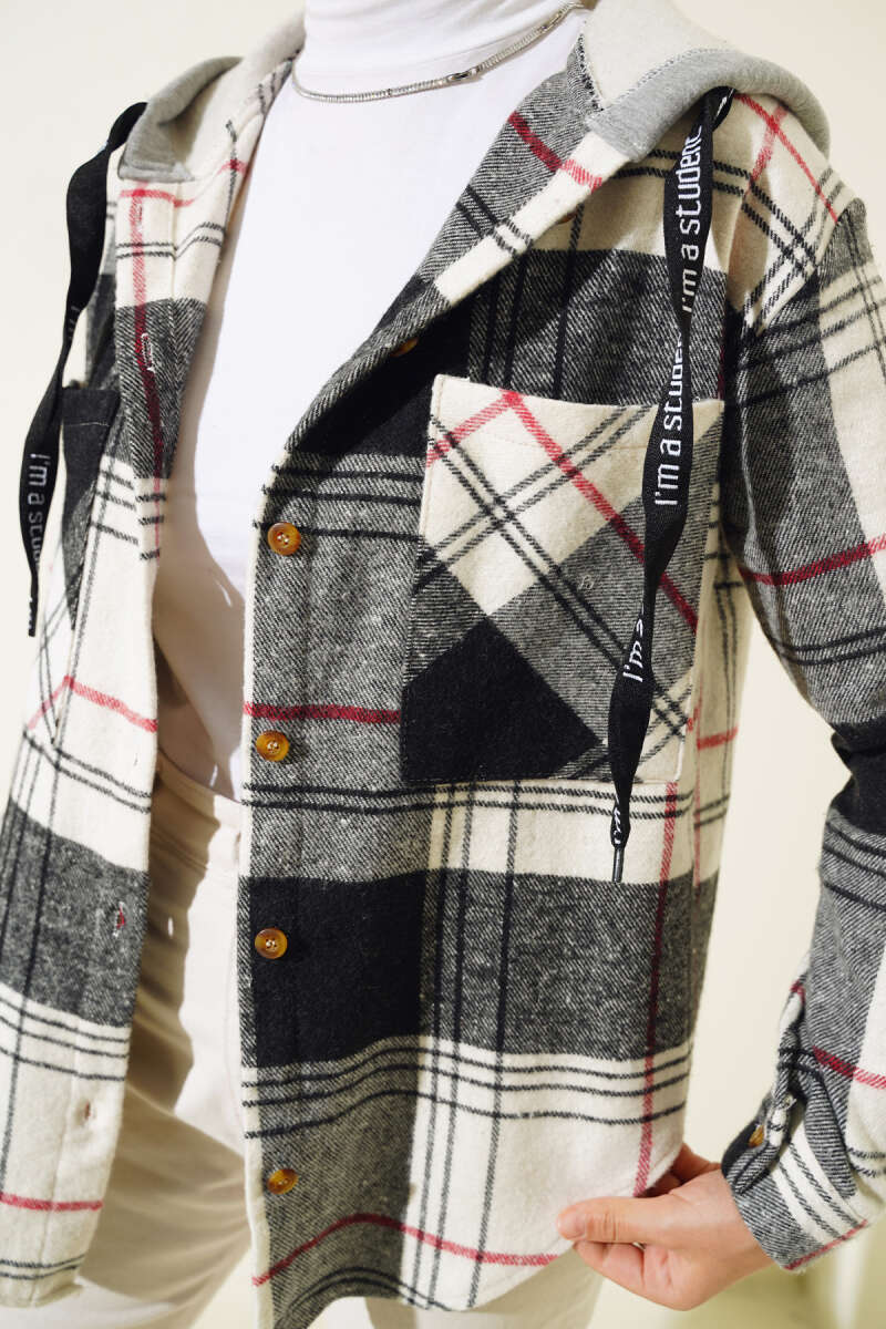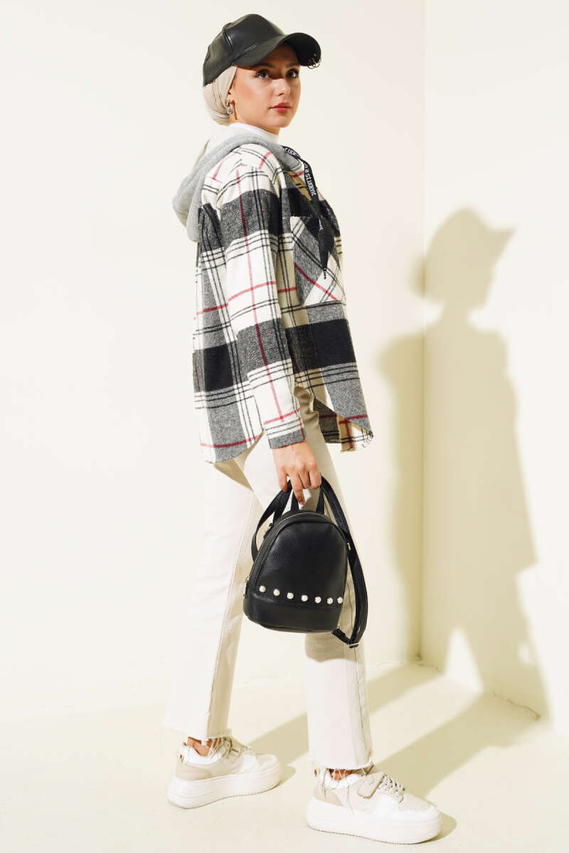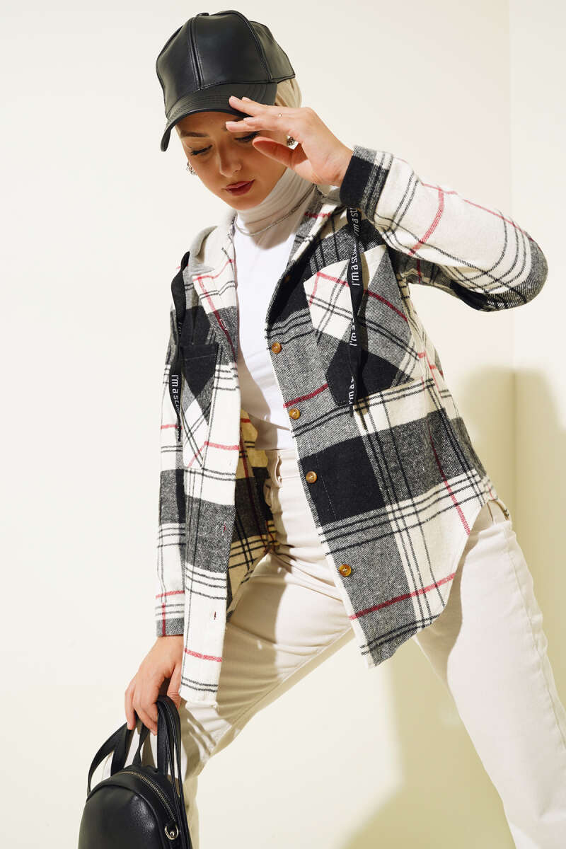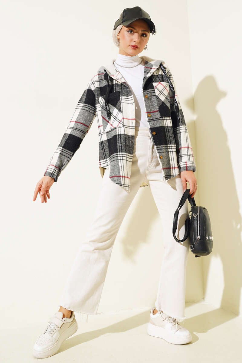 Çift Cepli Kapüşonlu Oduncu Gömlek Siyah