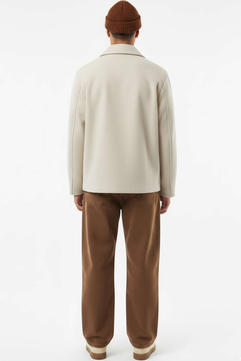 Gabardin Fermuarlı Erkek Ceket Ekru