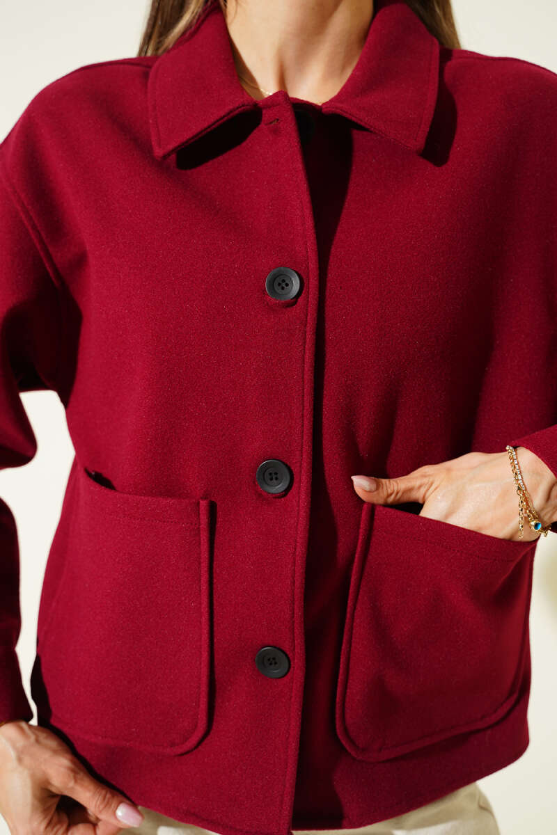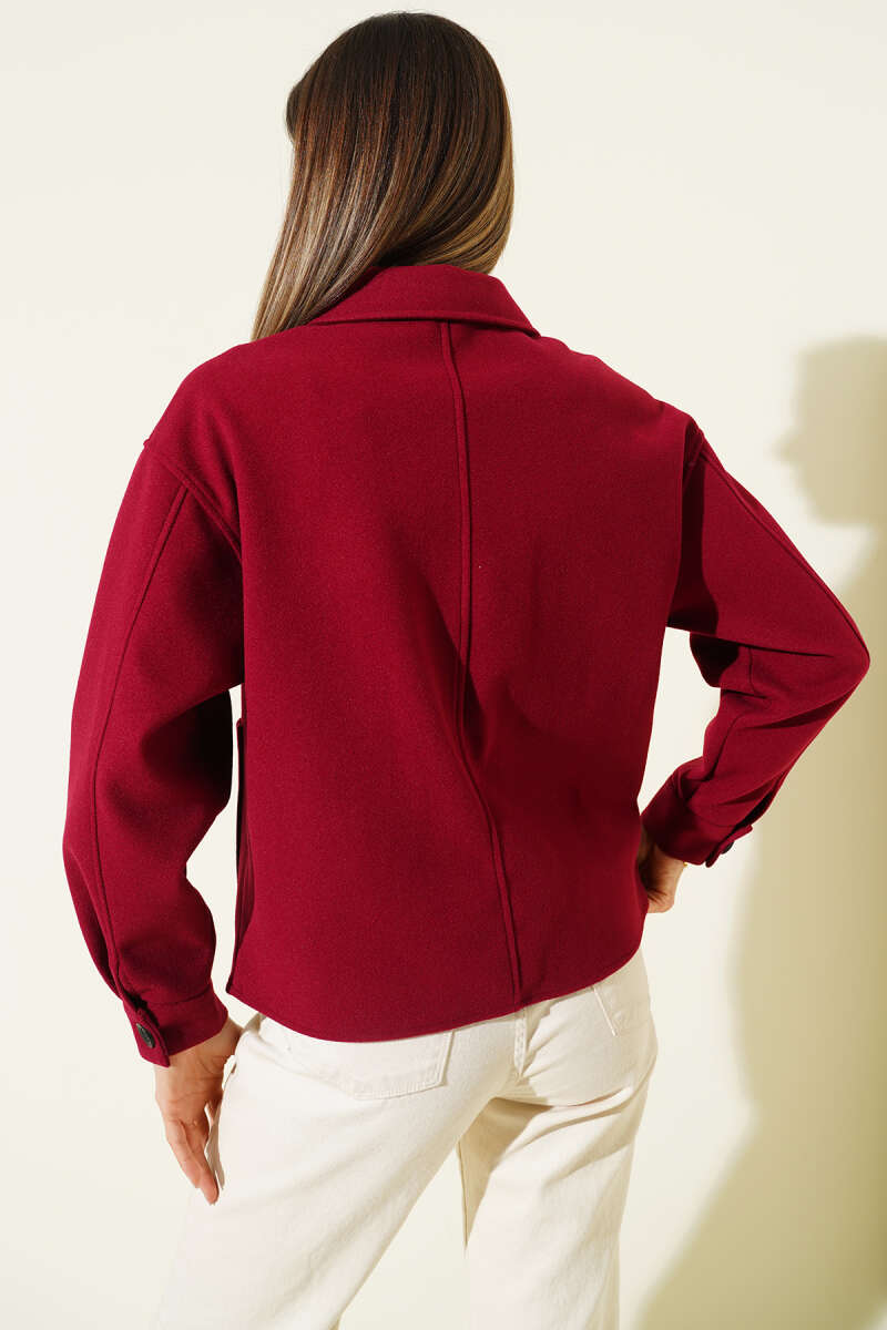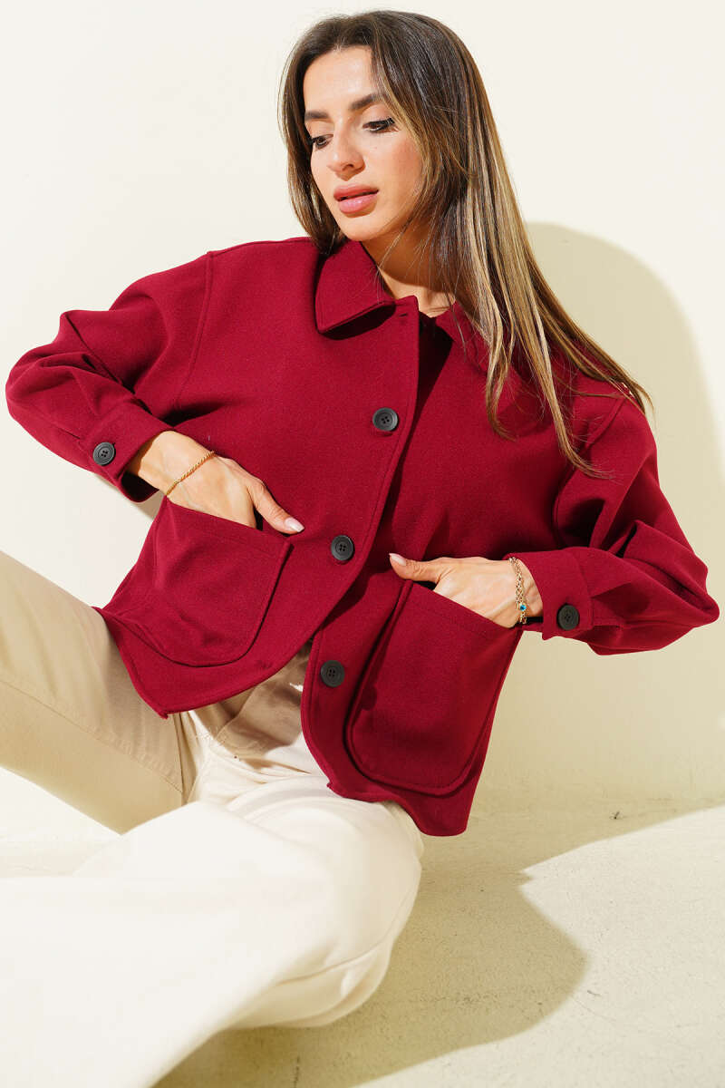 Çift Cepli Kısa Kaşe Ceket Bordo