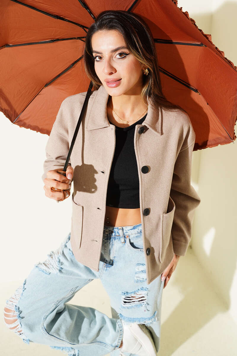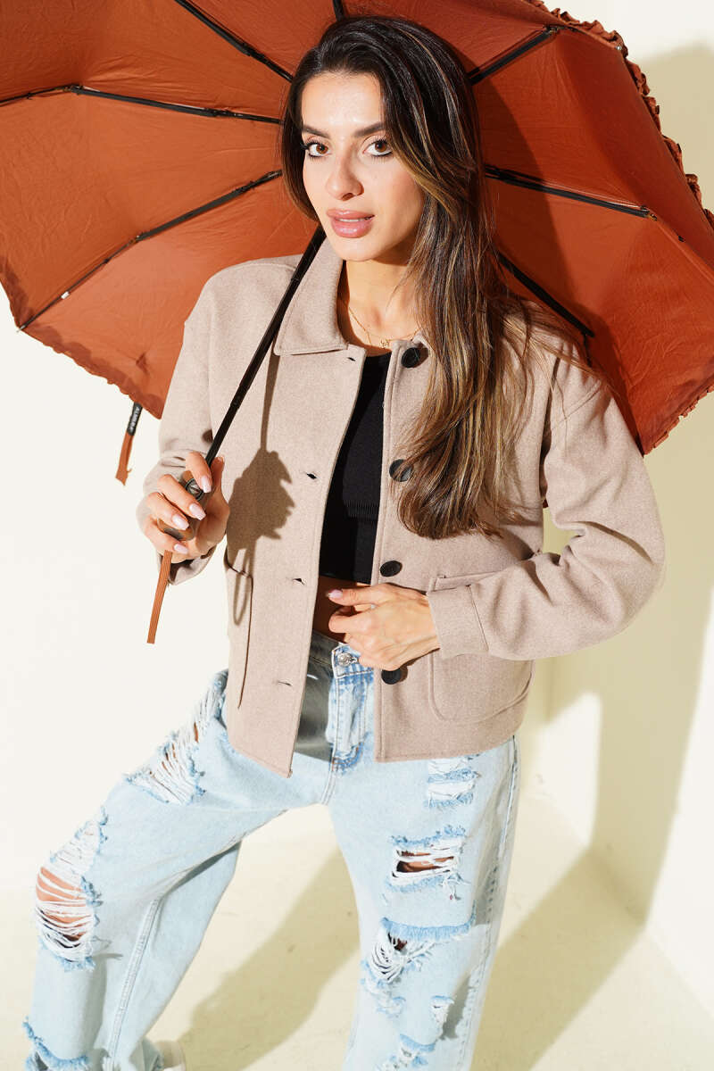 Kruvaze Yaka Kısa Kaban Mürdüm