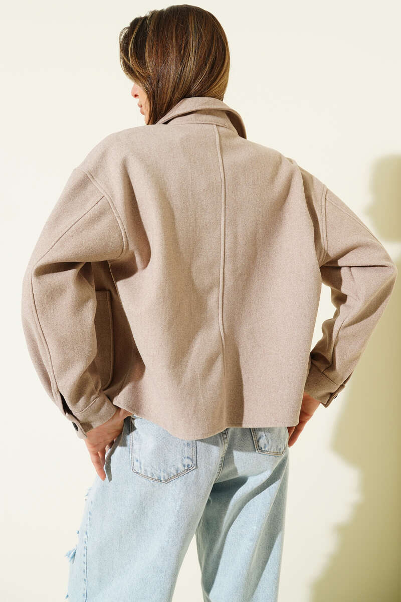 Garni Detaylı Fermuarlı Peluş Mont Bej