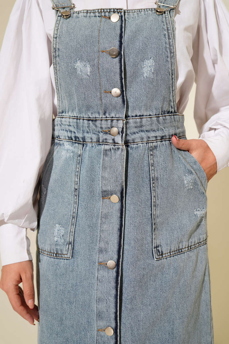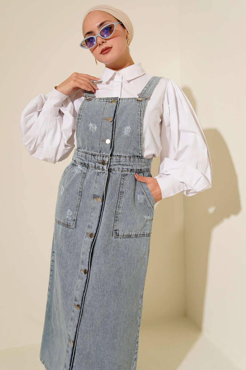 Tek Göğüs Cepli Kot Slopet Açık Kot