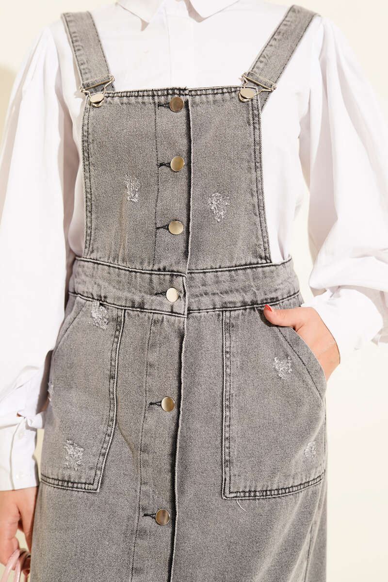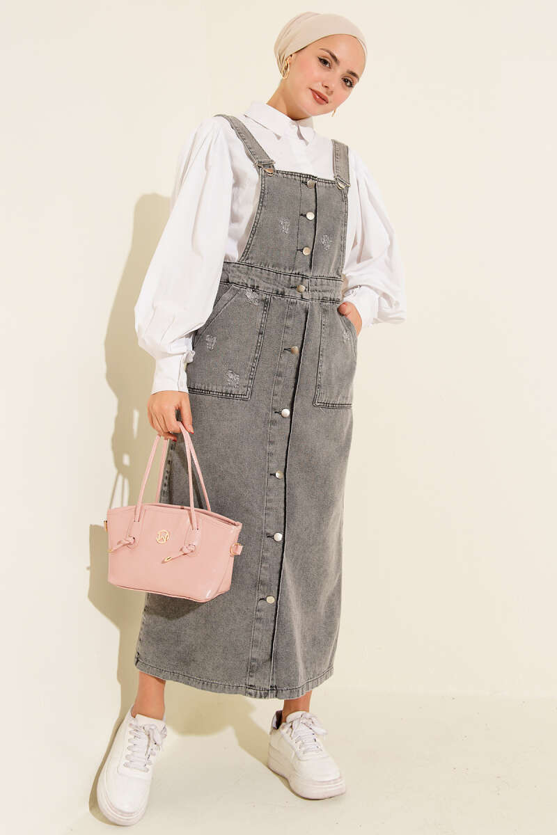 Boydan Metal Düğmeli Askılı Kot Slopet Siyah