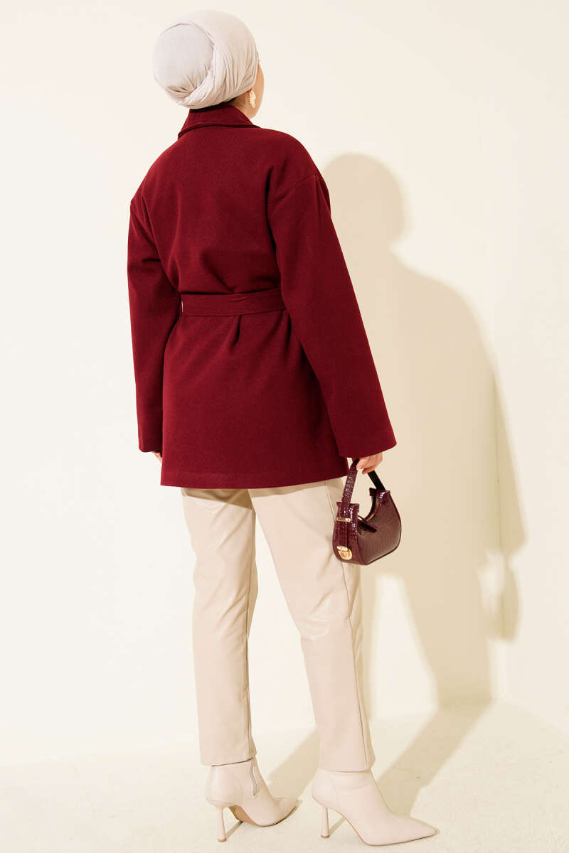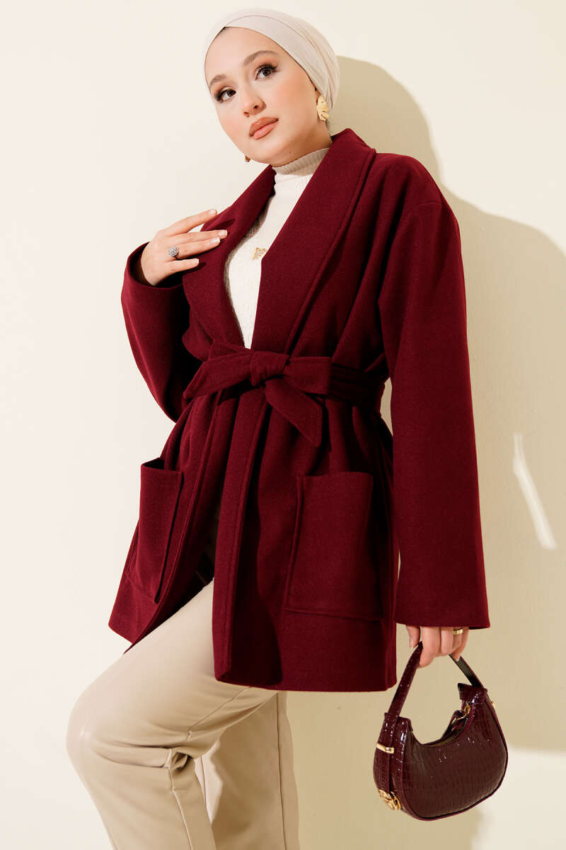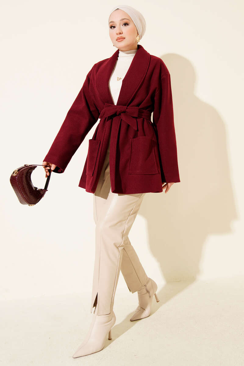 Kruvaze Yaka Kuşaklı Buklet Yelek Kırmızı