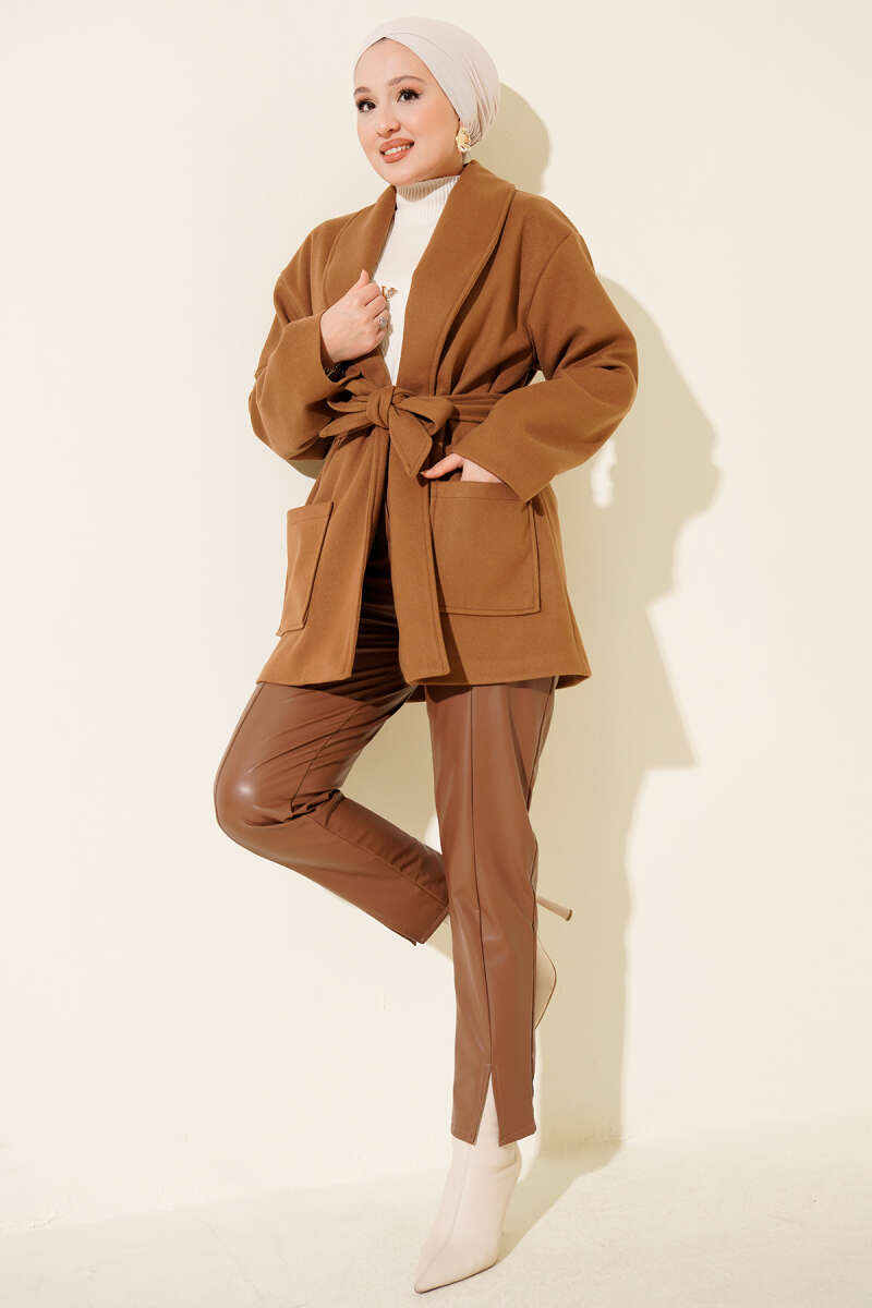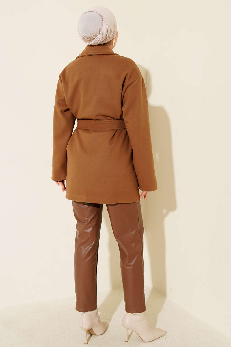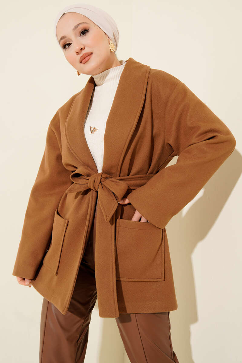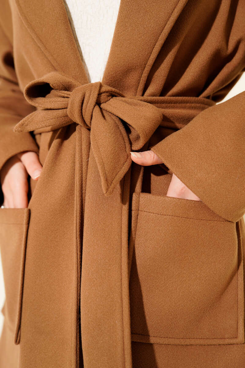 İp Bağlama Detaylı Ceket Latte