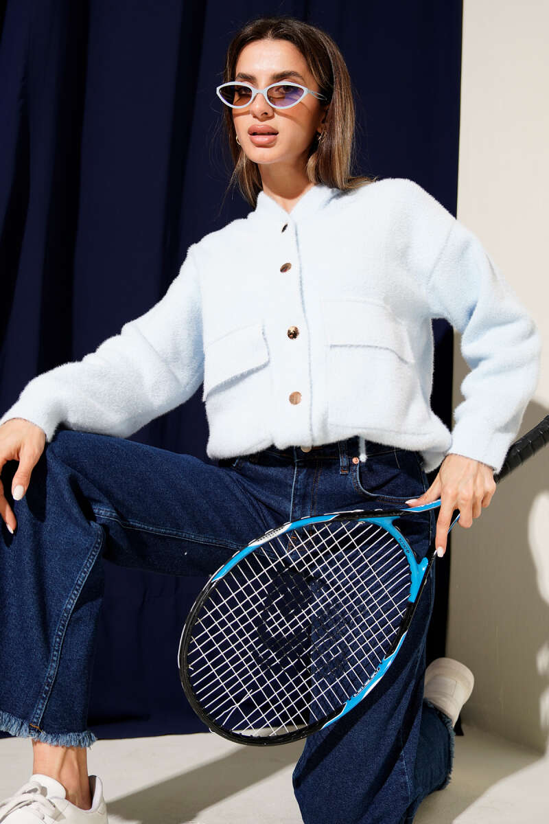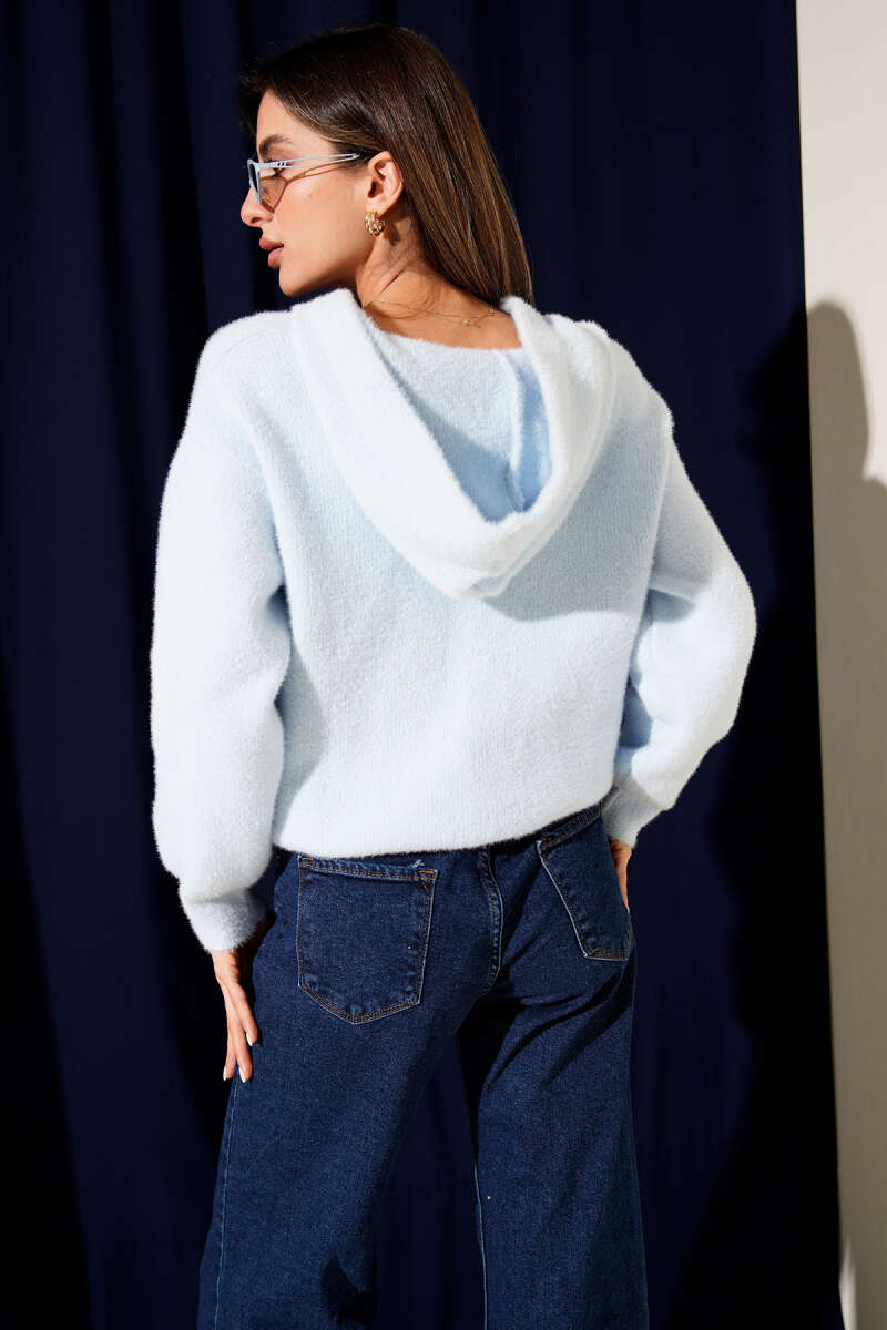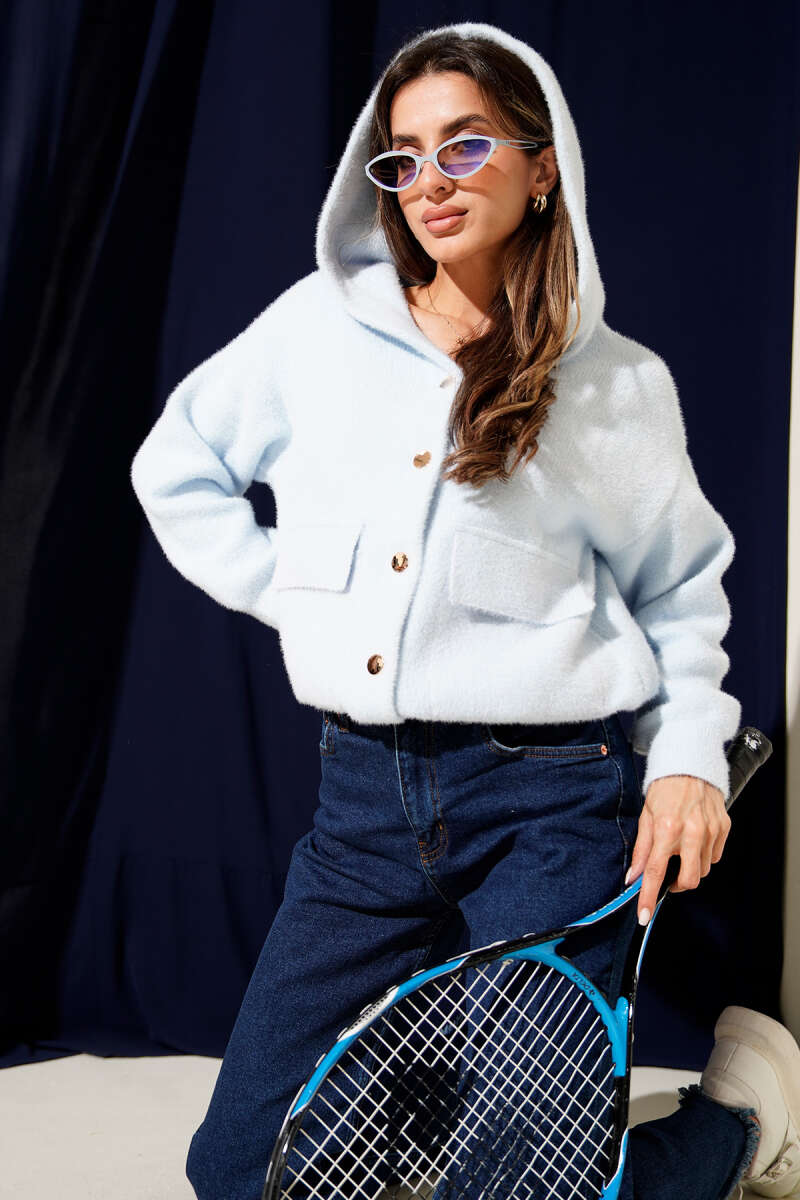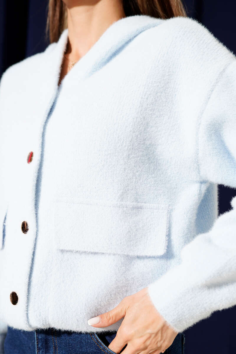 Çift Cepli Metal Düğmeli Kapüşonlu Hırka Bebe Mavi