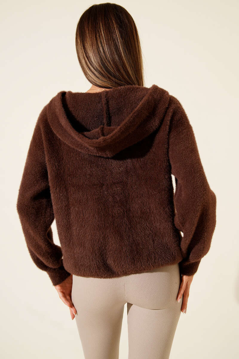 Önü Fermuarlı Kapüşonlu Hırka Kahve