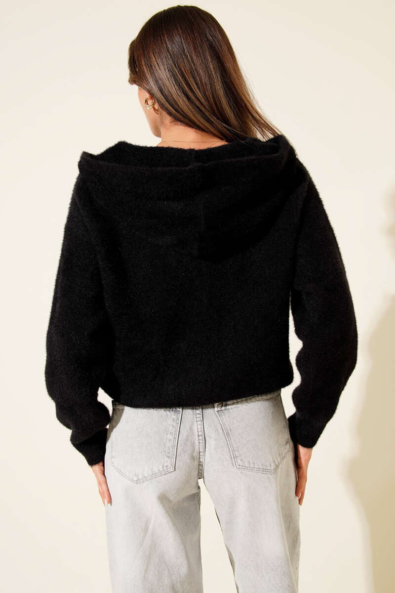 Önü Fermuarlı Kapüşonlu Hırka Siyah
