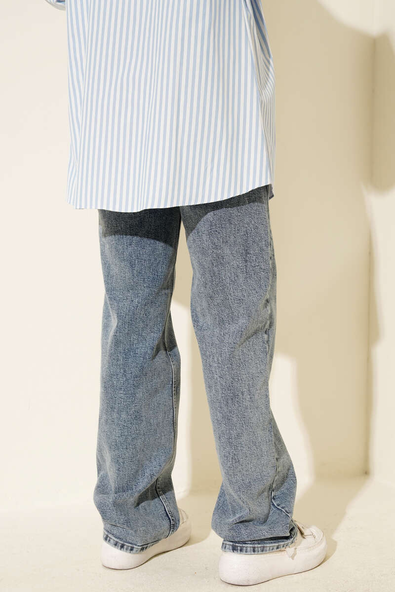 Çift Cepli Palazzo Kot Pantolon Açık Kar