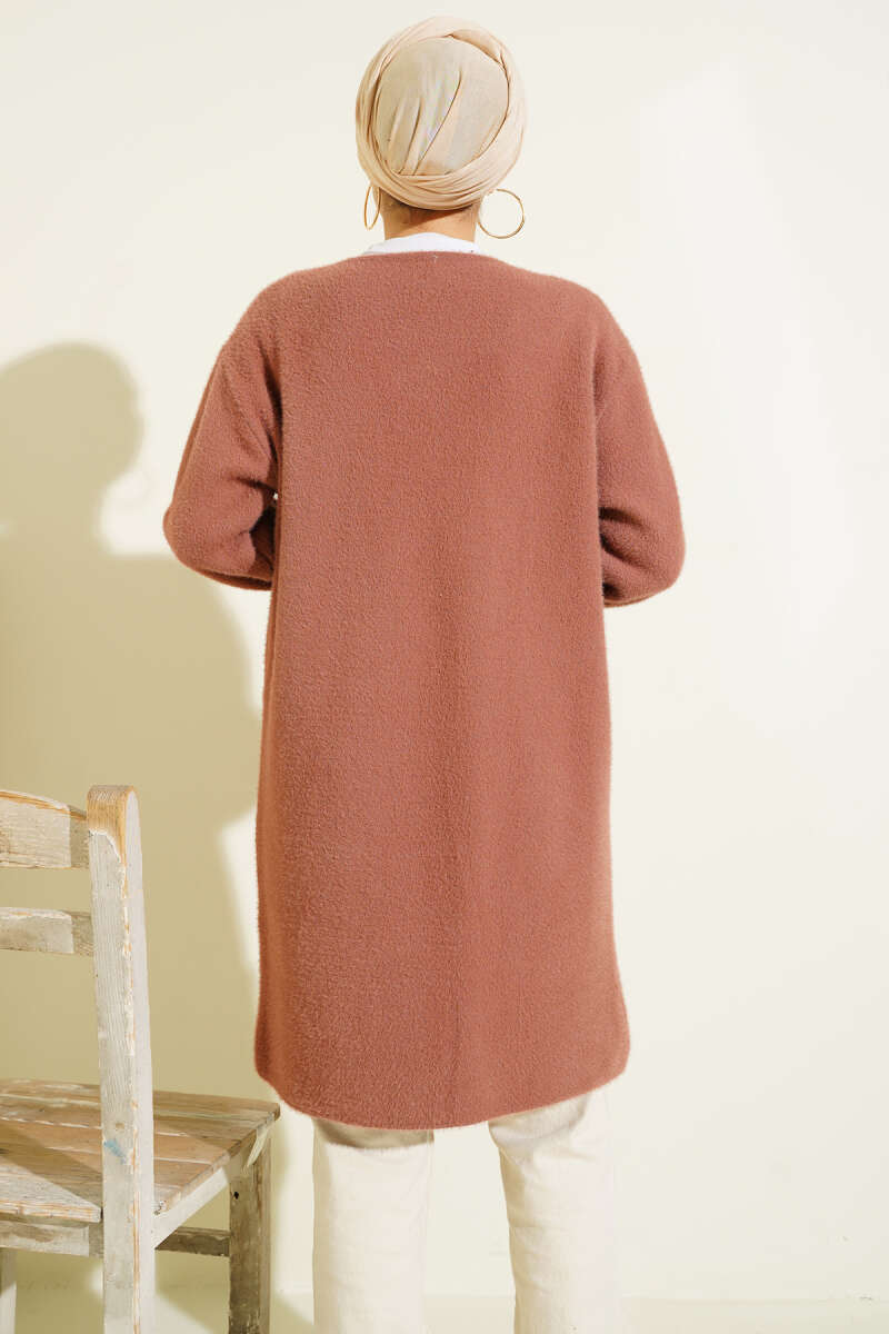 Saç Örgülü Düğmeli Triko Hırka Latte