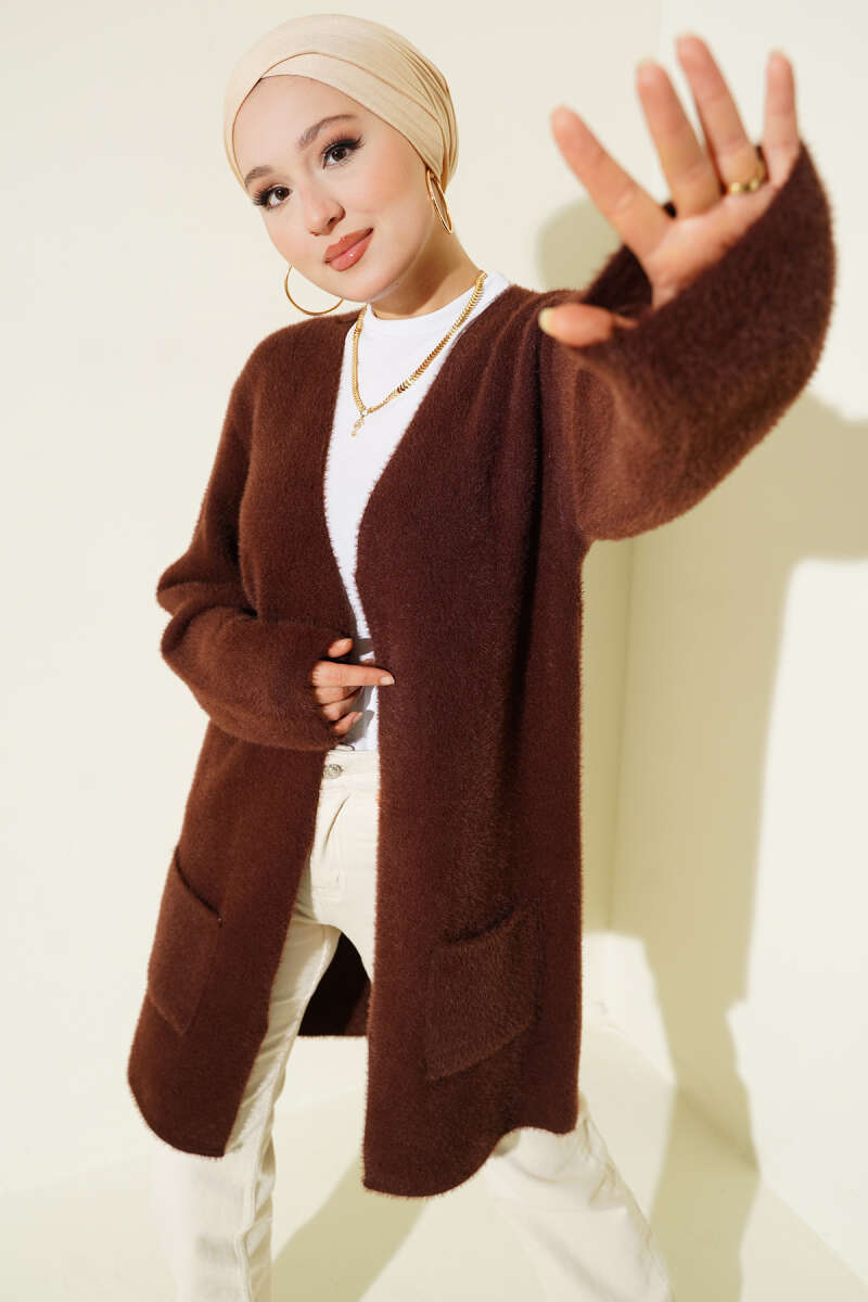 Çift Cepli Sakallı Hırka Gül Kurusu