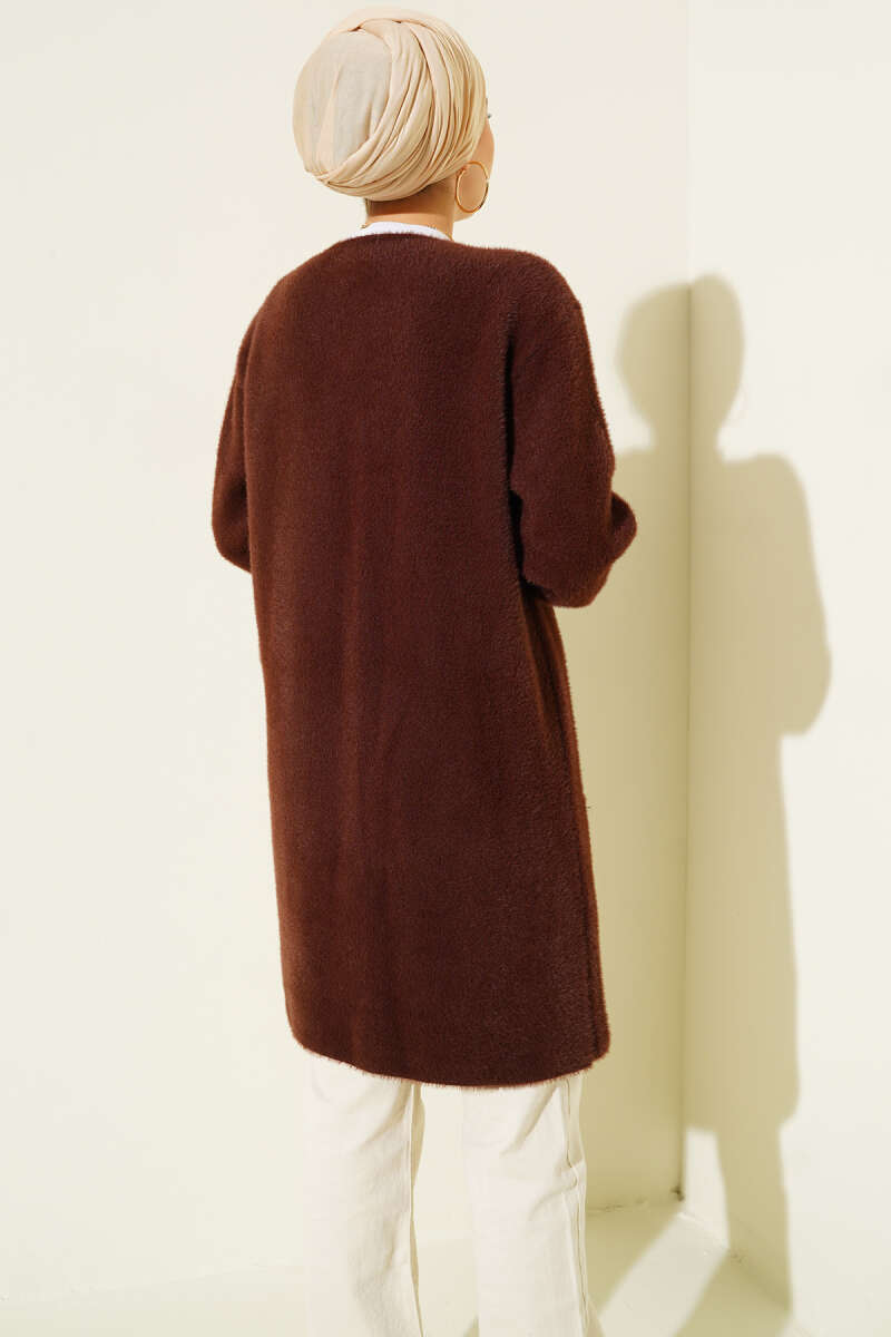 Saç Örgülü Düğmeli Triko Hırka Latte