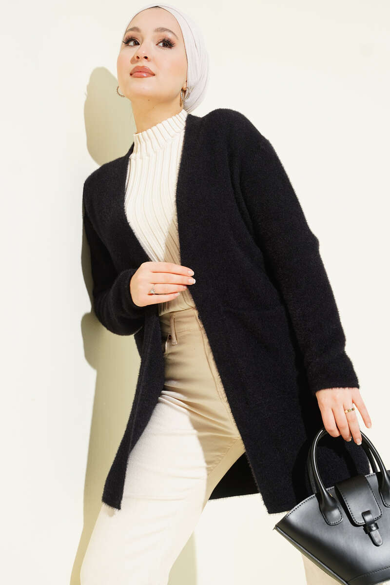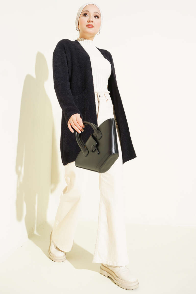 Bisiklet Yaka Sakal Detaylı Kazak Siyah