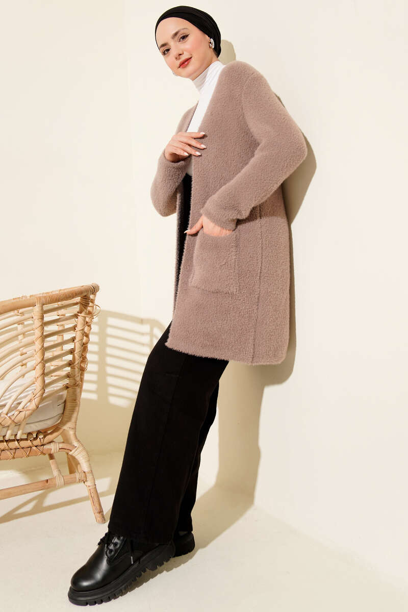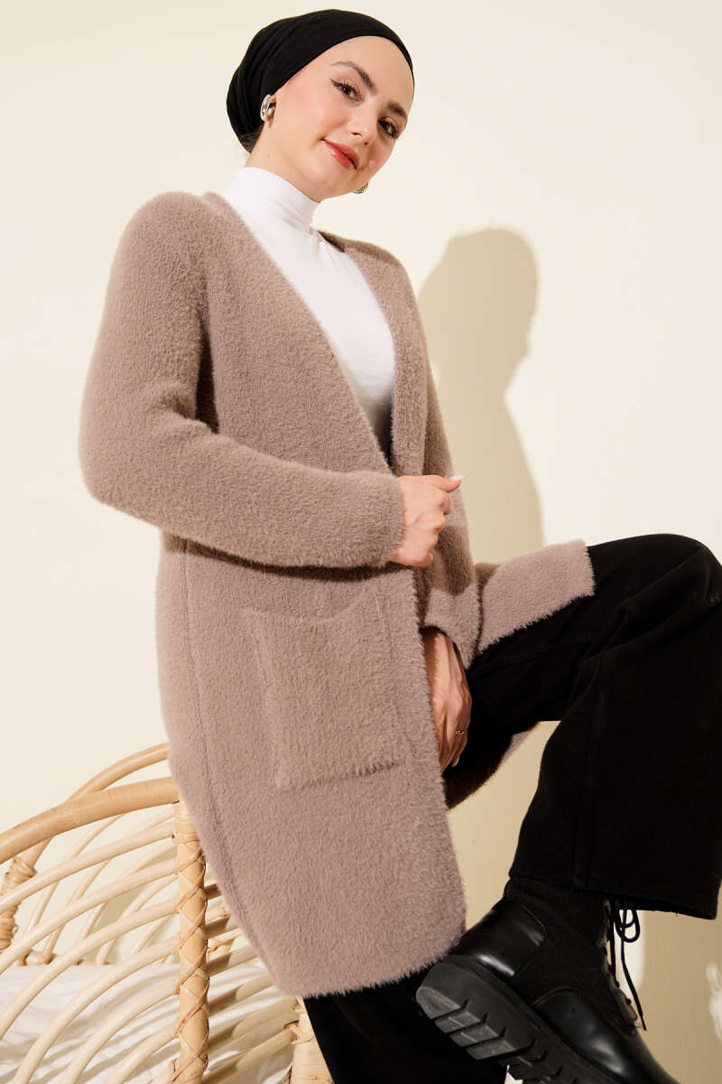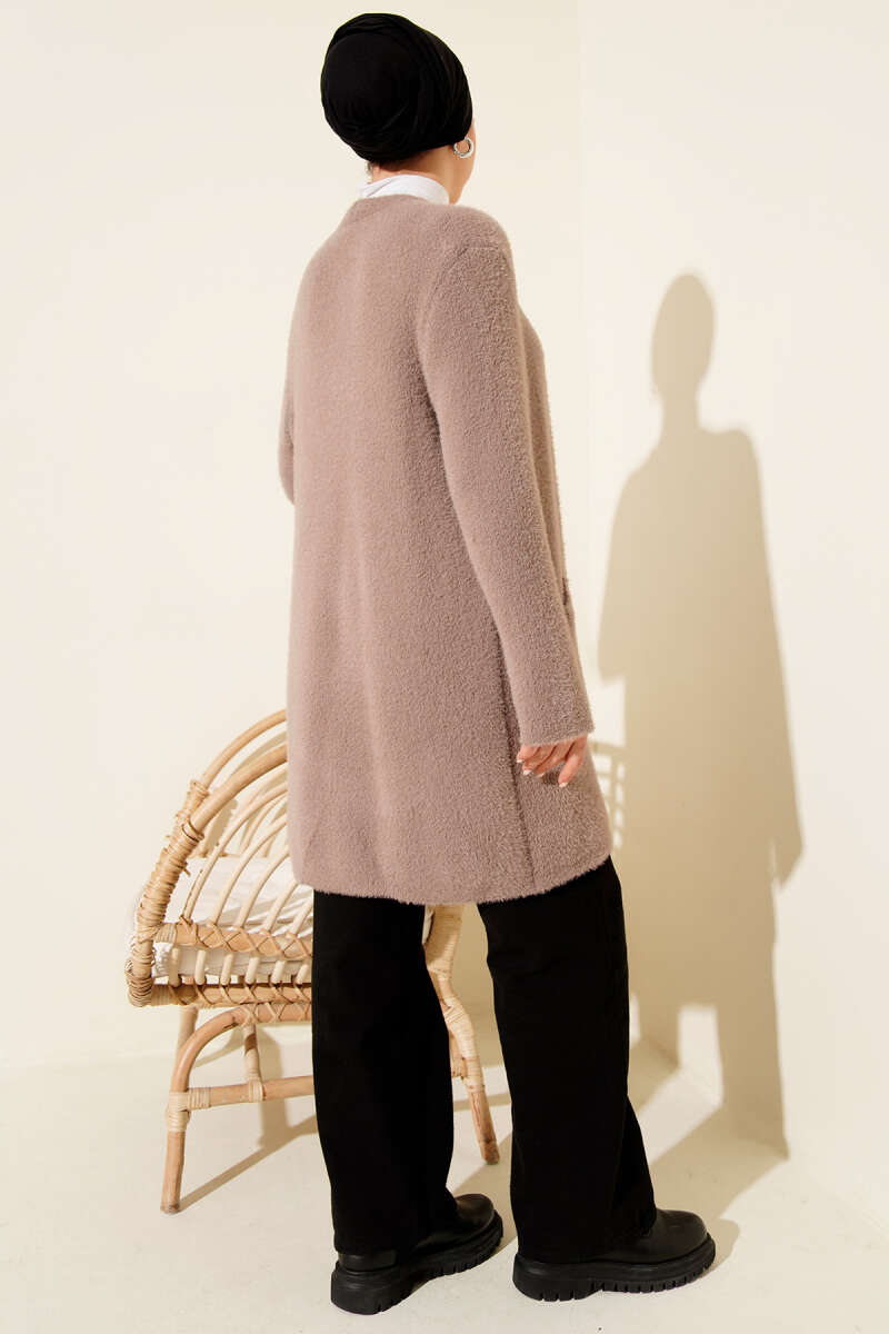 Düşük Omuz Düğmeli Triko Hırka Bej