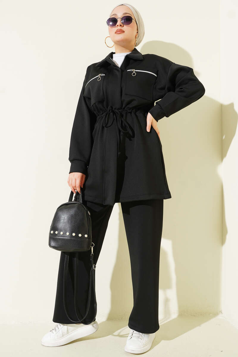 Çift Cepli Tünelli Scuba İkili Takım Siyah