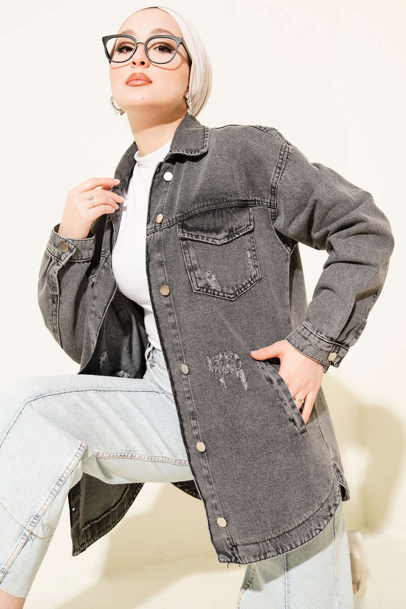 Midye Dikişli Atkılı Ceket Füme