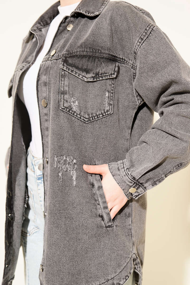 Çift Cepli Yıpratma Kot Ceket Mavi