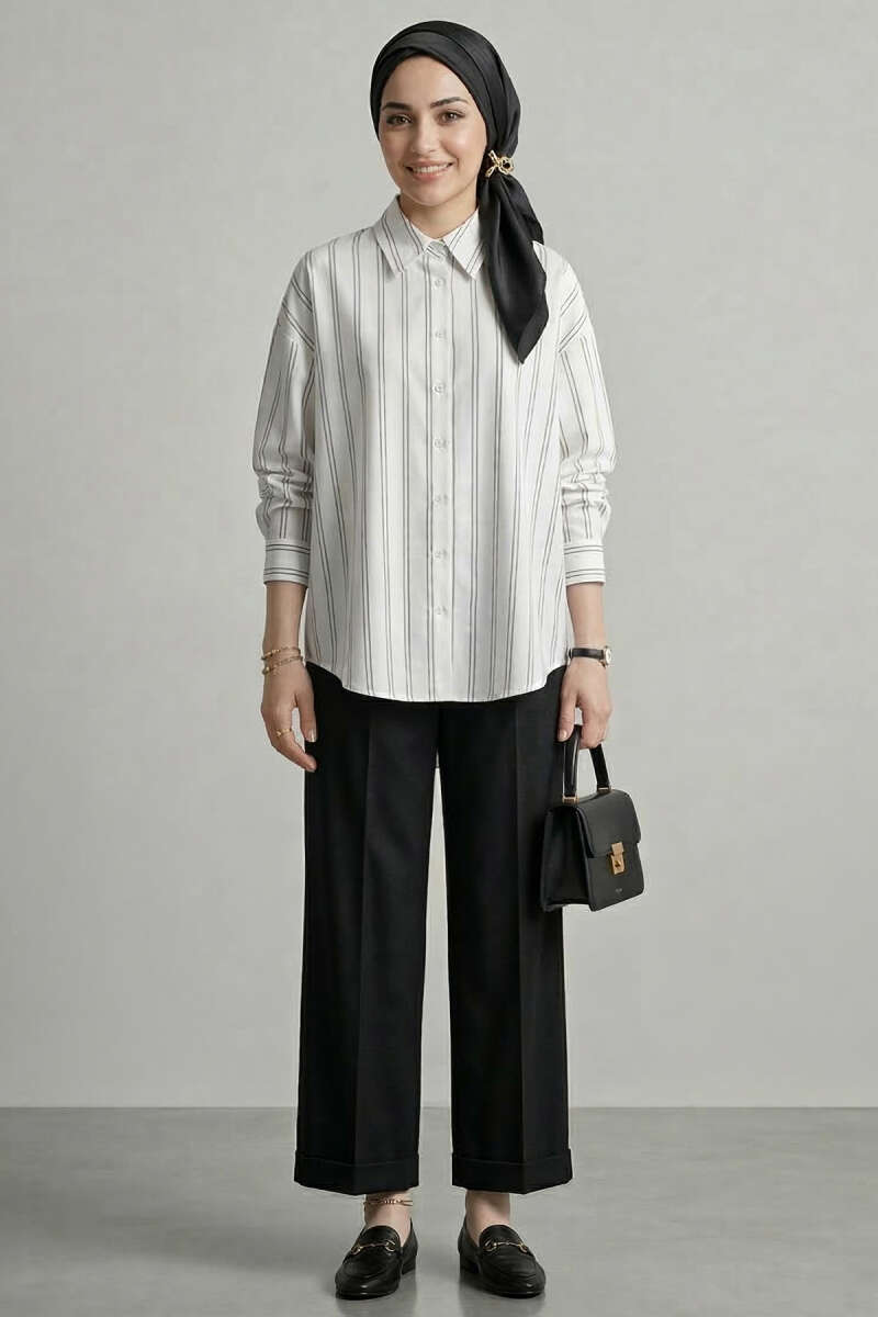 Çift Çizgili Gömlek Beyaz
