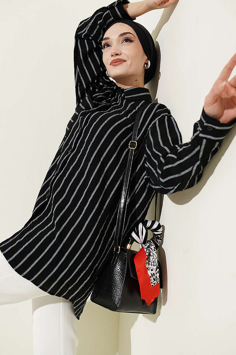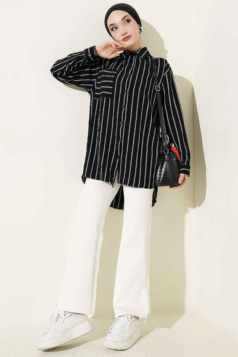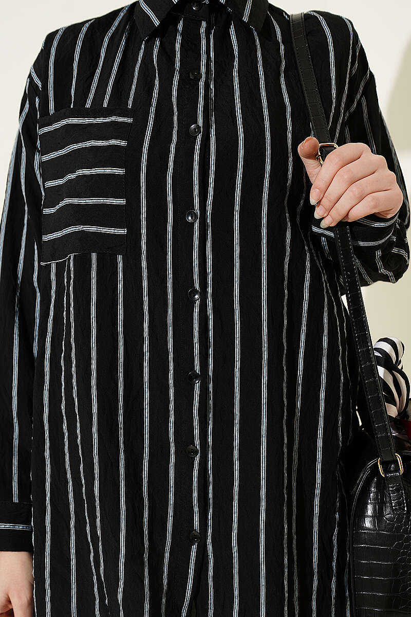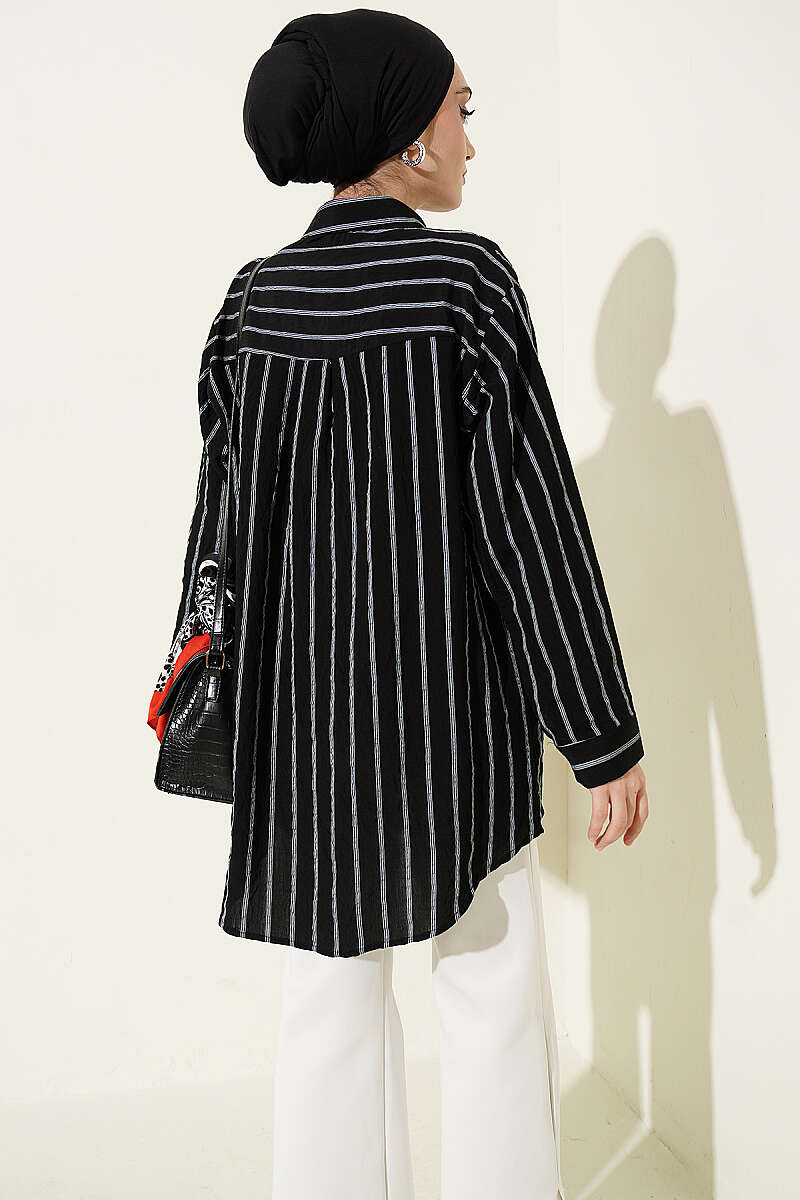Çift Çizgili Salaş Hella Gömlek Siyah
