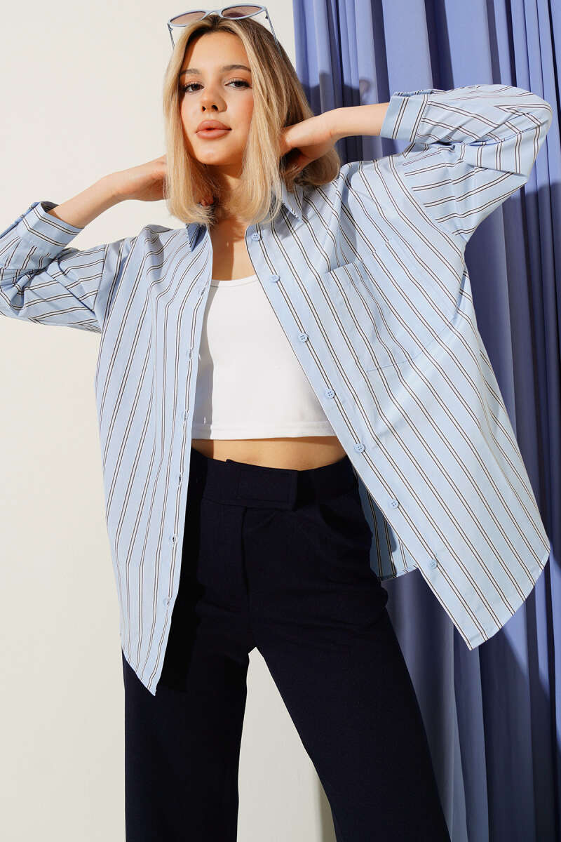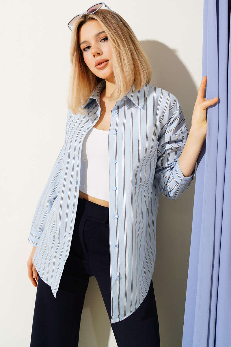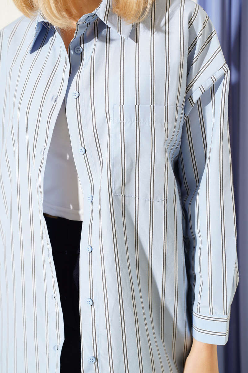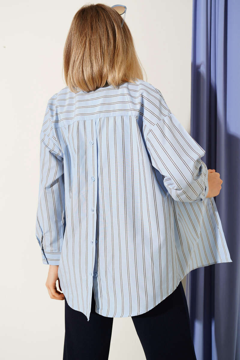 Çift Çizgili Sırt Düğmeli Gömlek Mavi