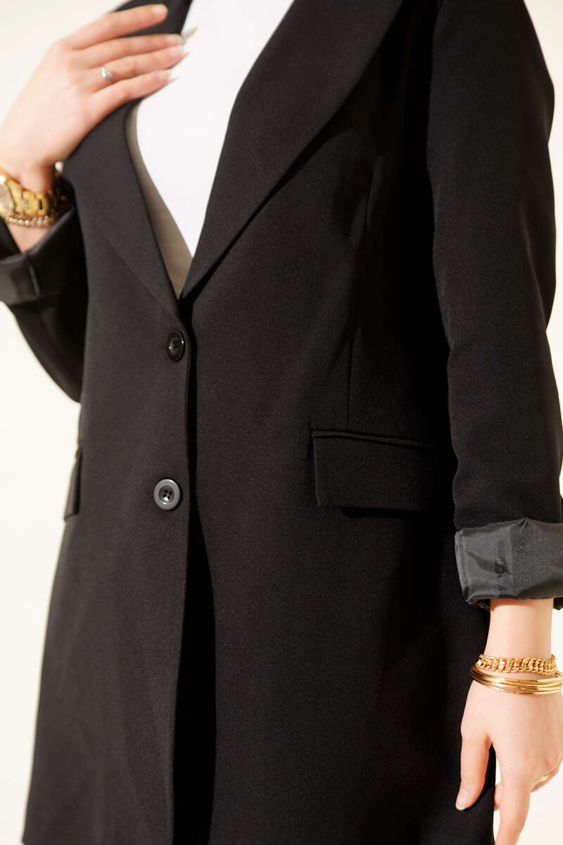 Bel Tünelli Çıtçıtlı Peluş Ceket Siyah