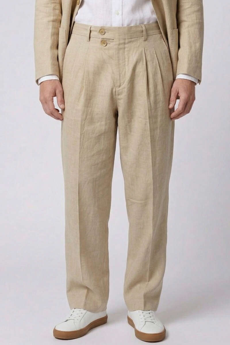 Hasır Kemerli Keten Erkek Pantolon Kahve