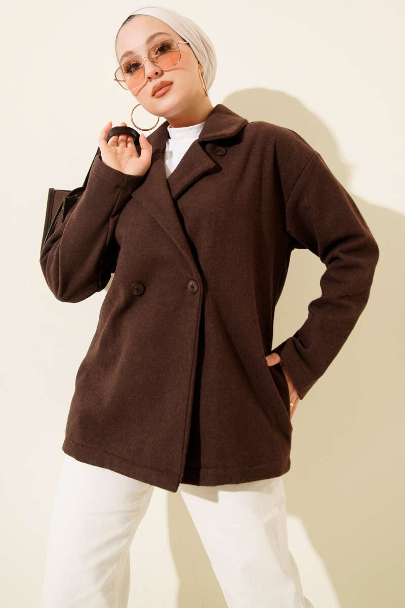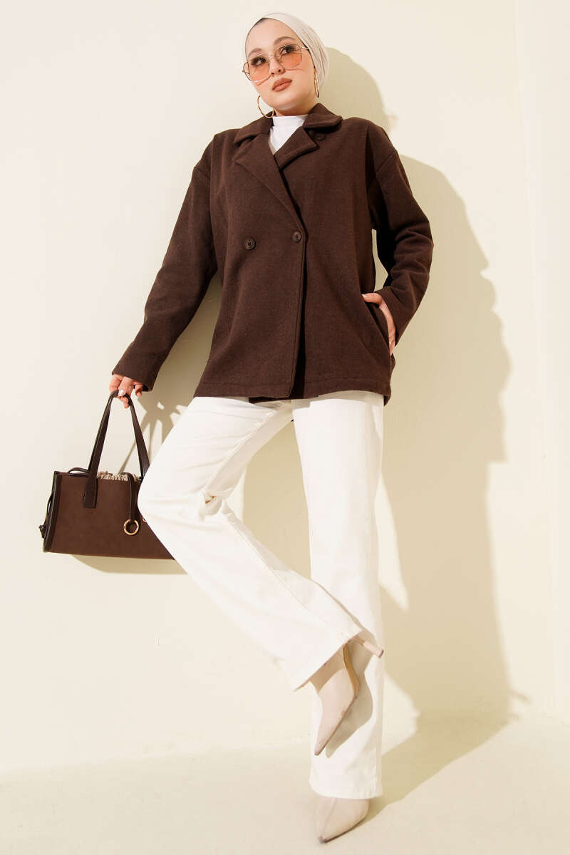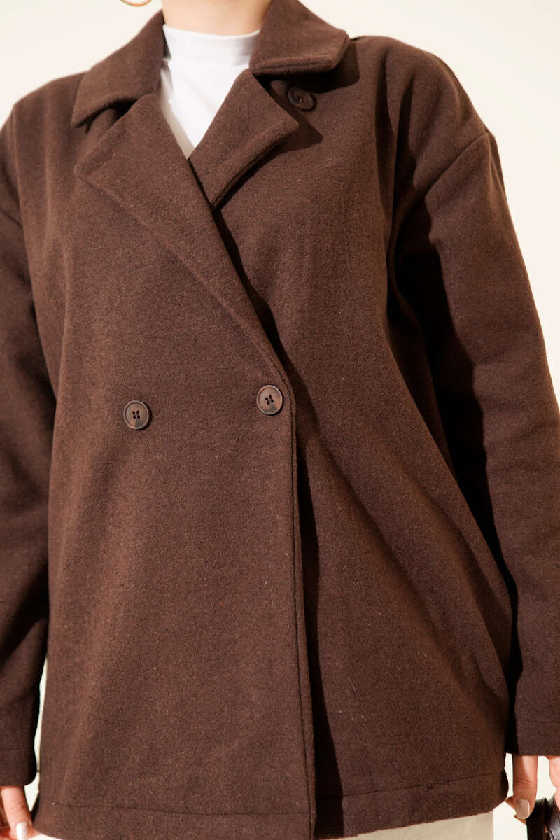 Çift Düğmeli Kısa Kaşe Kaban Siyah