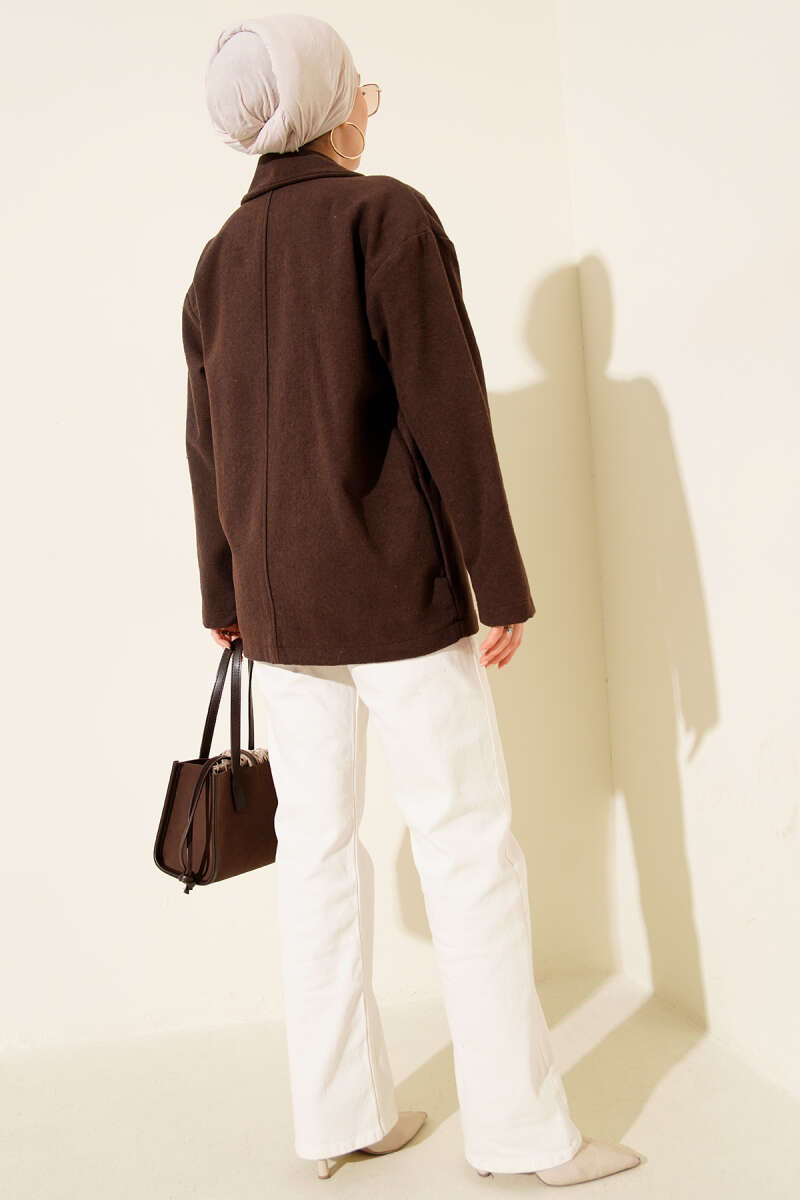 Gold Düğmeli Sakallı Kaban Füme