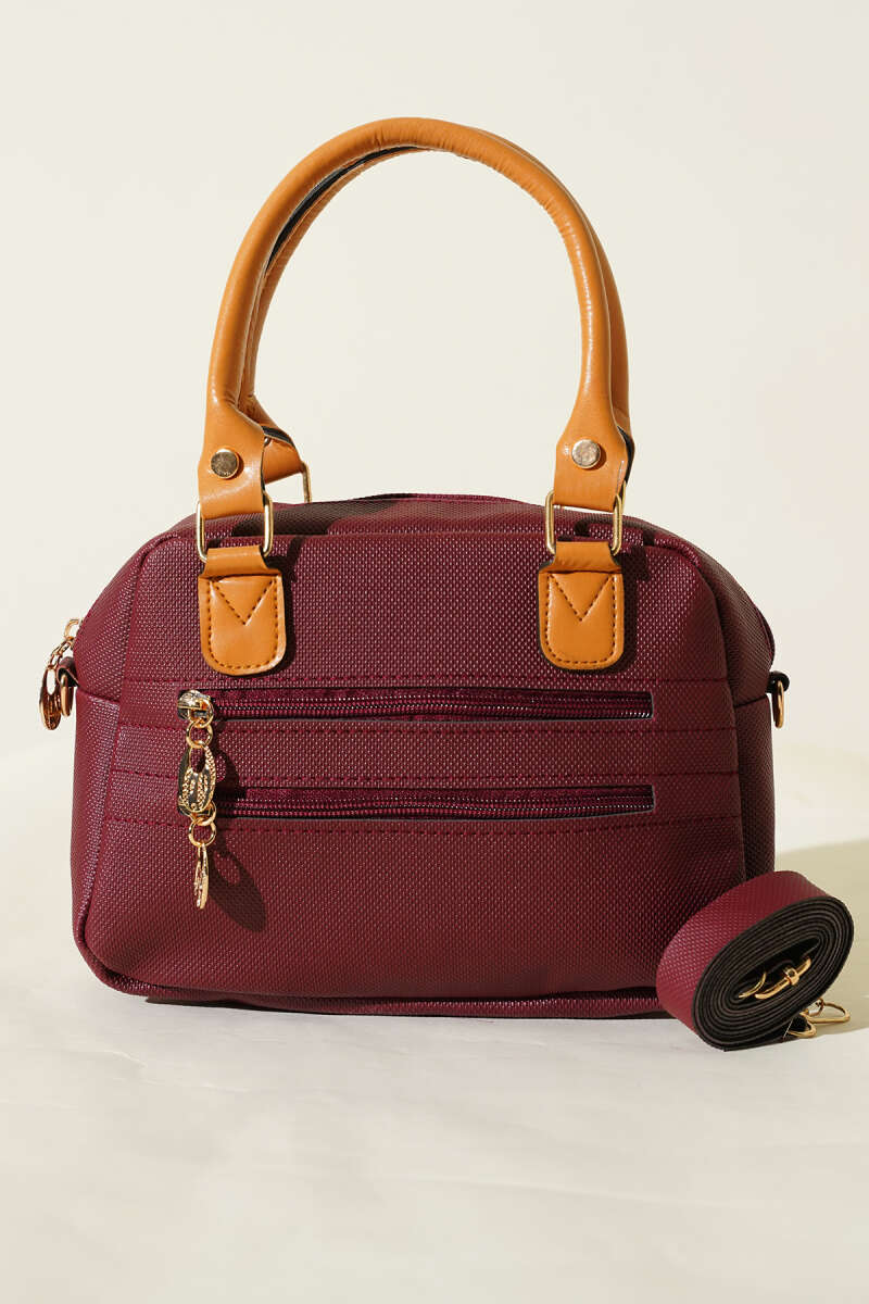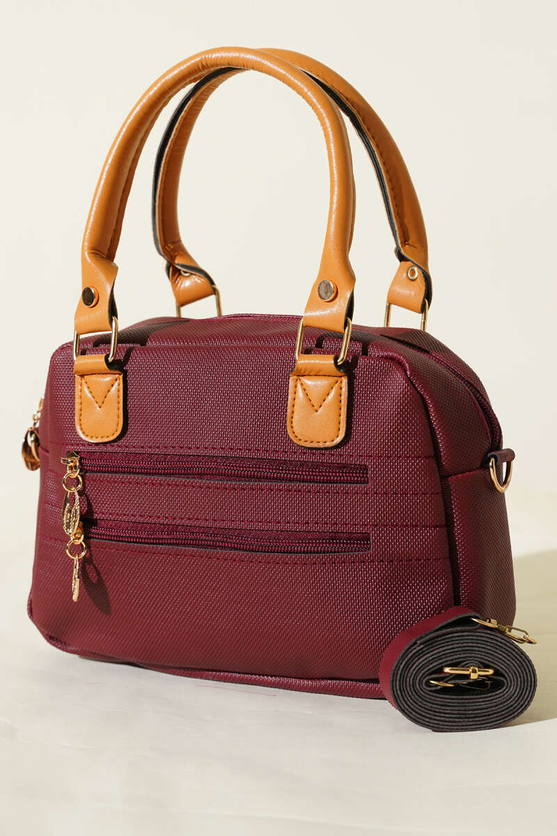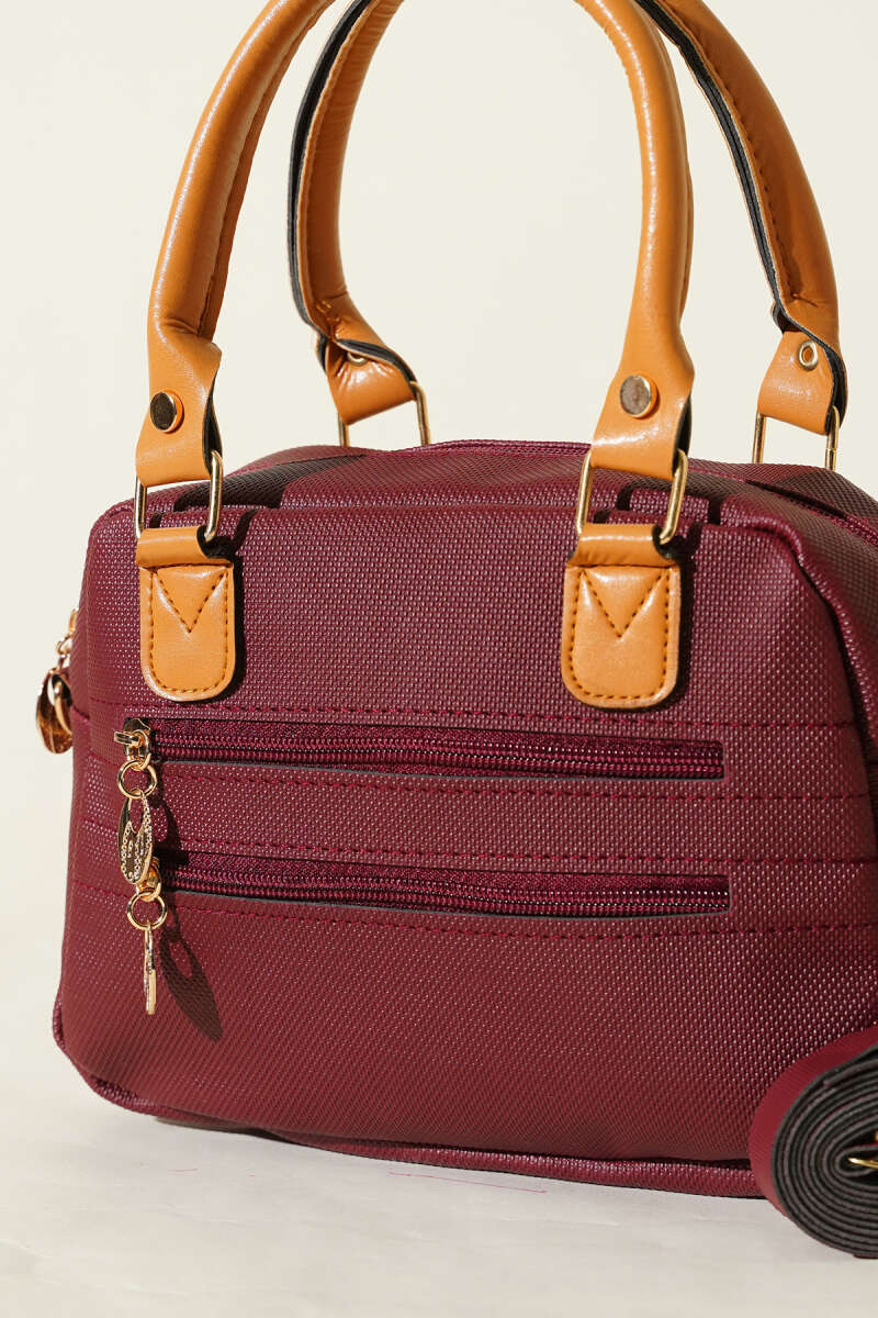Fermuarlı Üç Bölmeli Çapraz Çanta Bordo