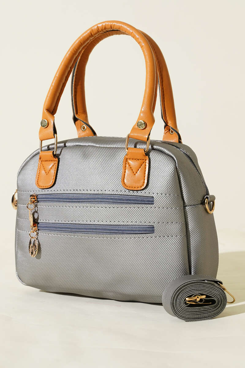 Fermuarlı Üç Bölmeli Çapraz Çanta Silver