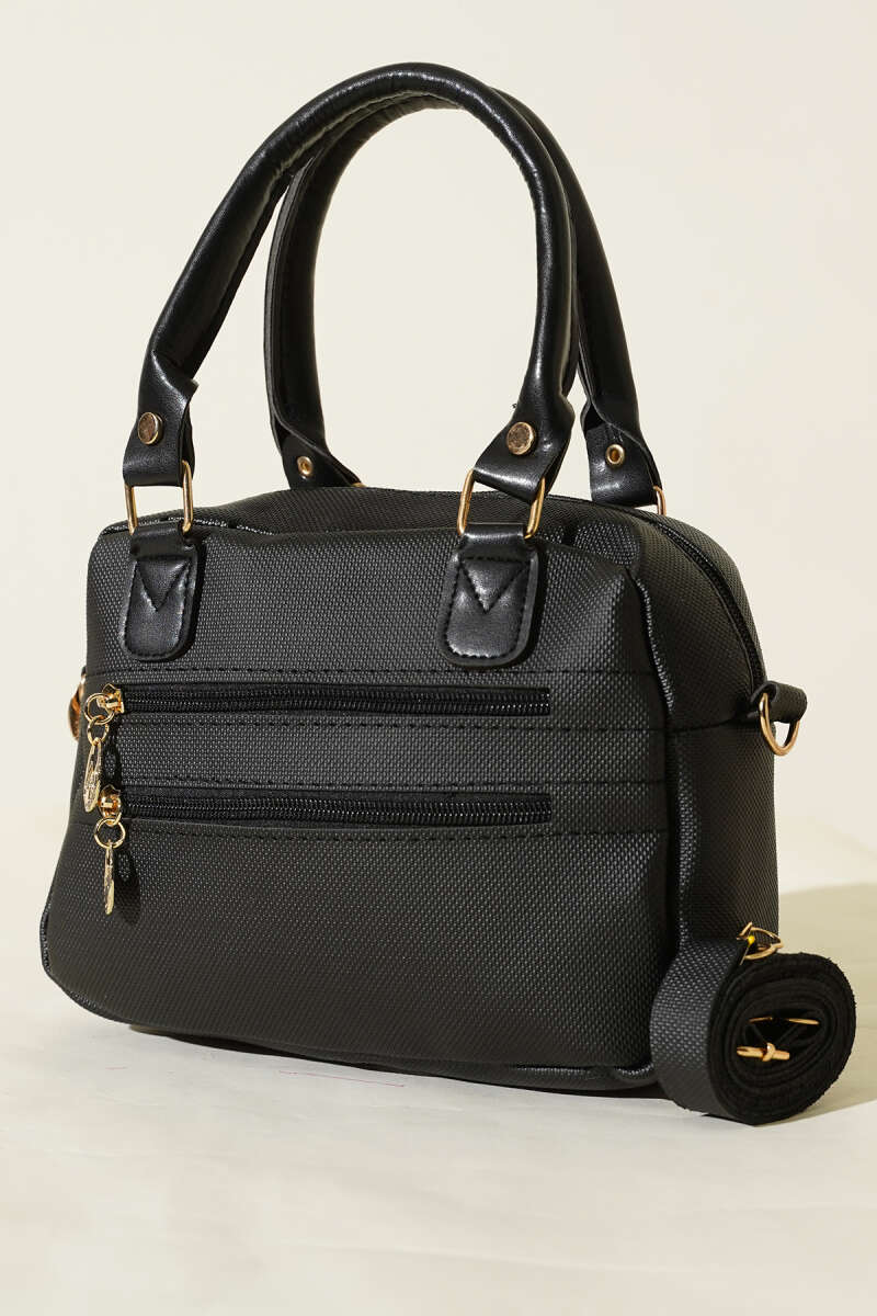 Fermuarlı Üç Bölmeli Çapraz Çanta Siyah