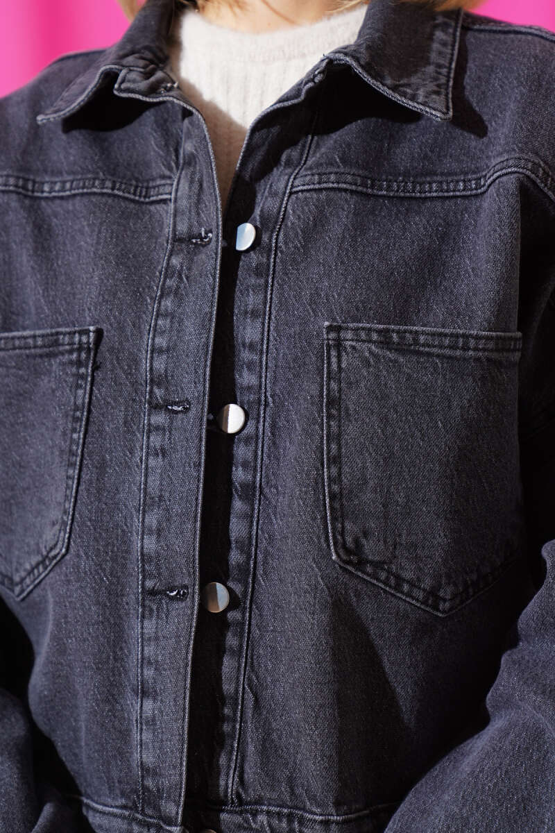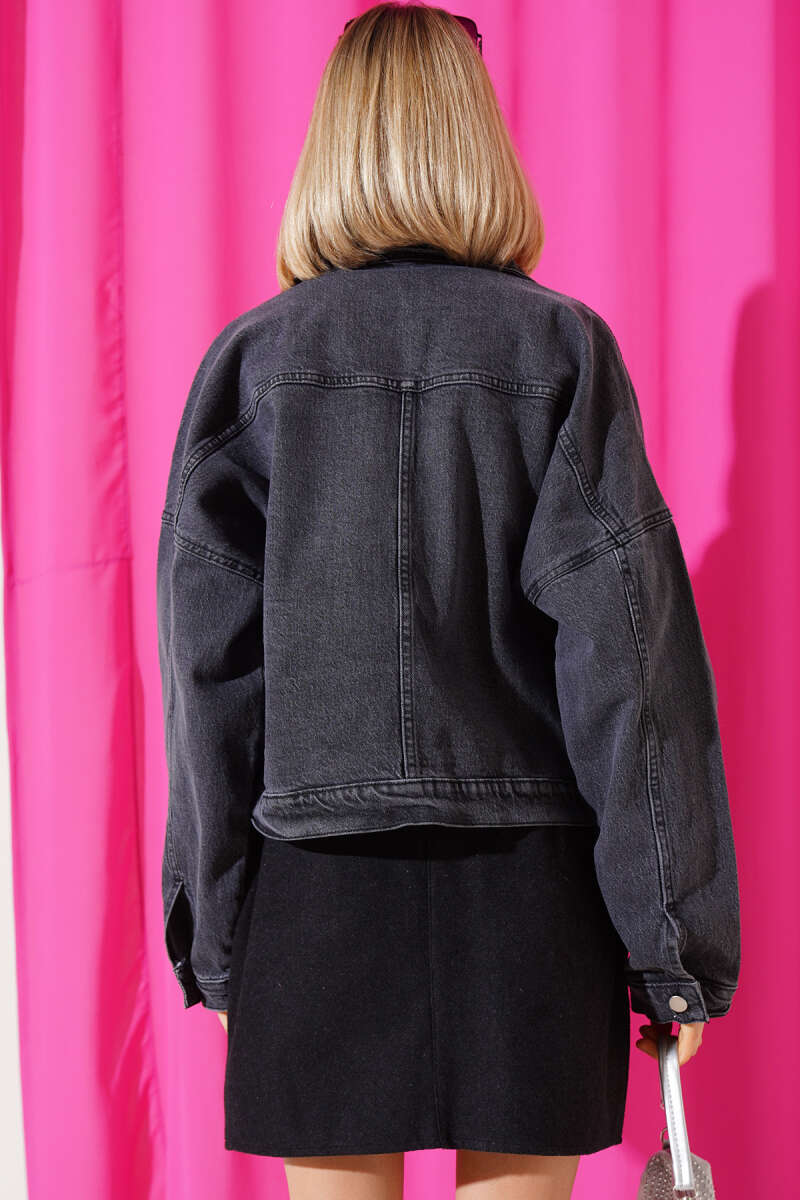 Çift Göğüs Cepli Kısa Kot Ceket Antrasit