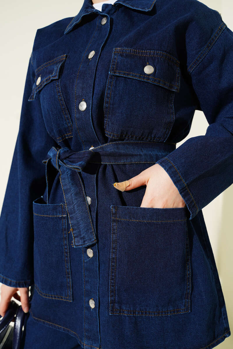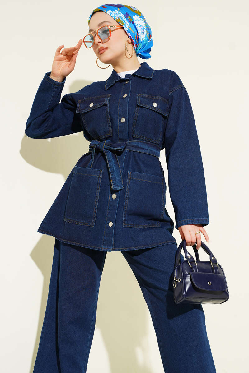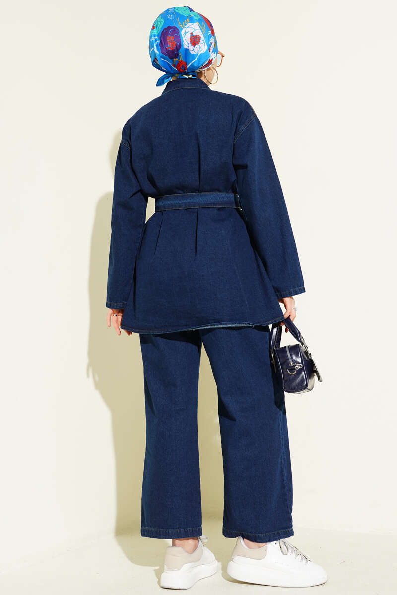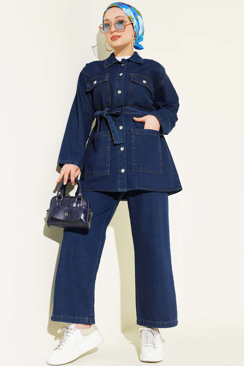 Çift Göğüs Cepli Kot İkili Takım Lacivert