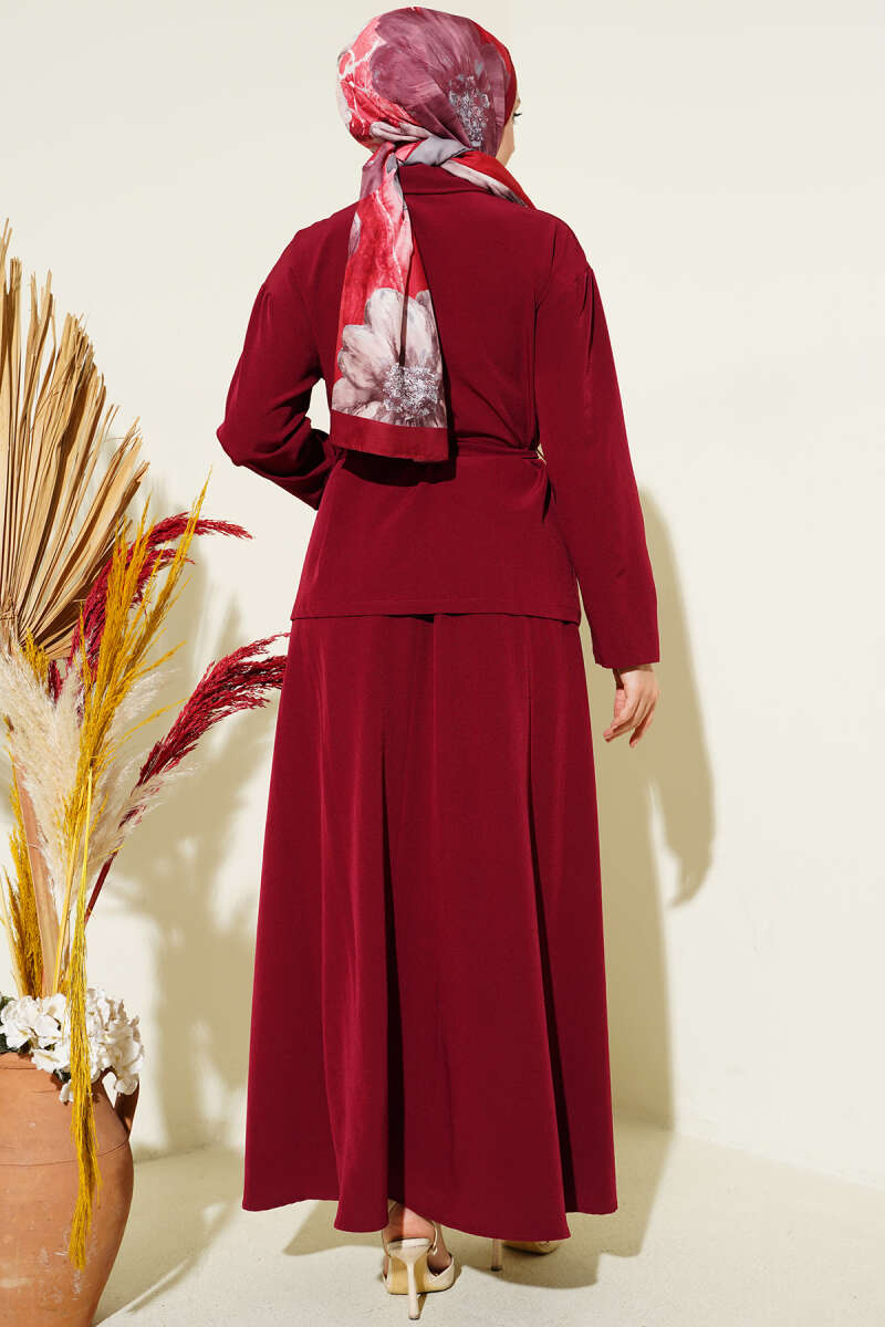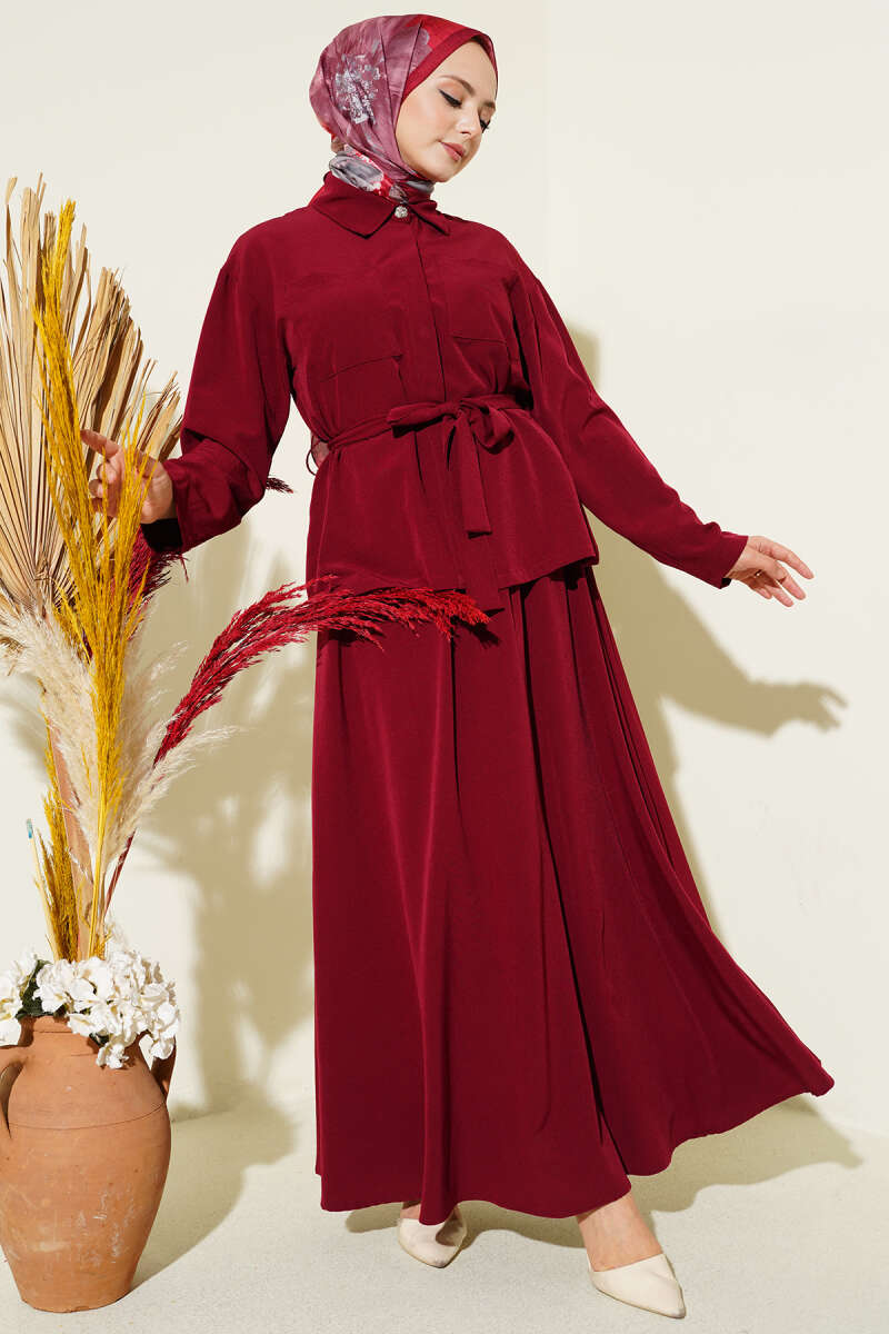 Çift Göğüs Cepli Kuşaklı Etekli Takım Siyah