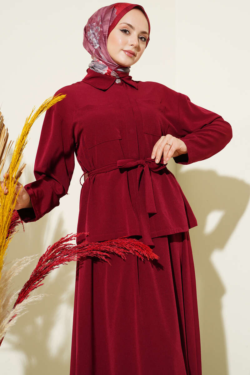 Yaka ve Kol Nakışlı Pullu Loyşa Tunik Bordo