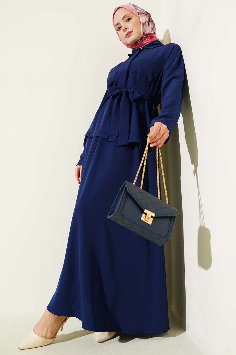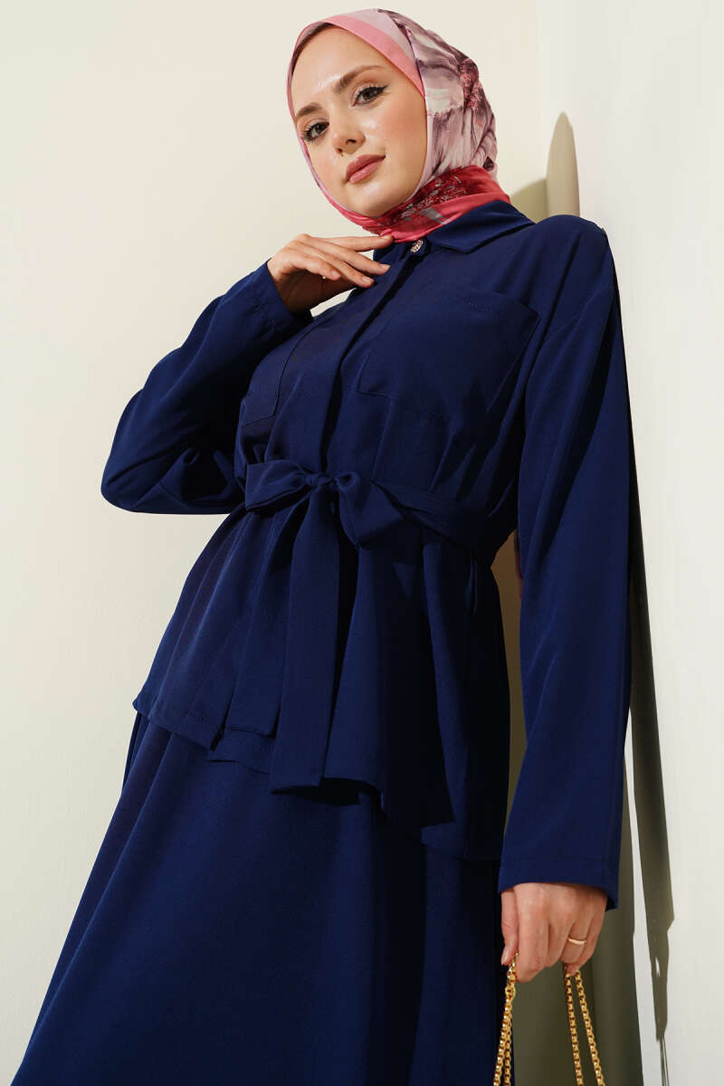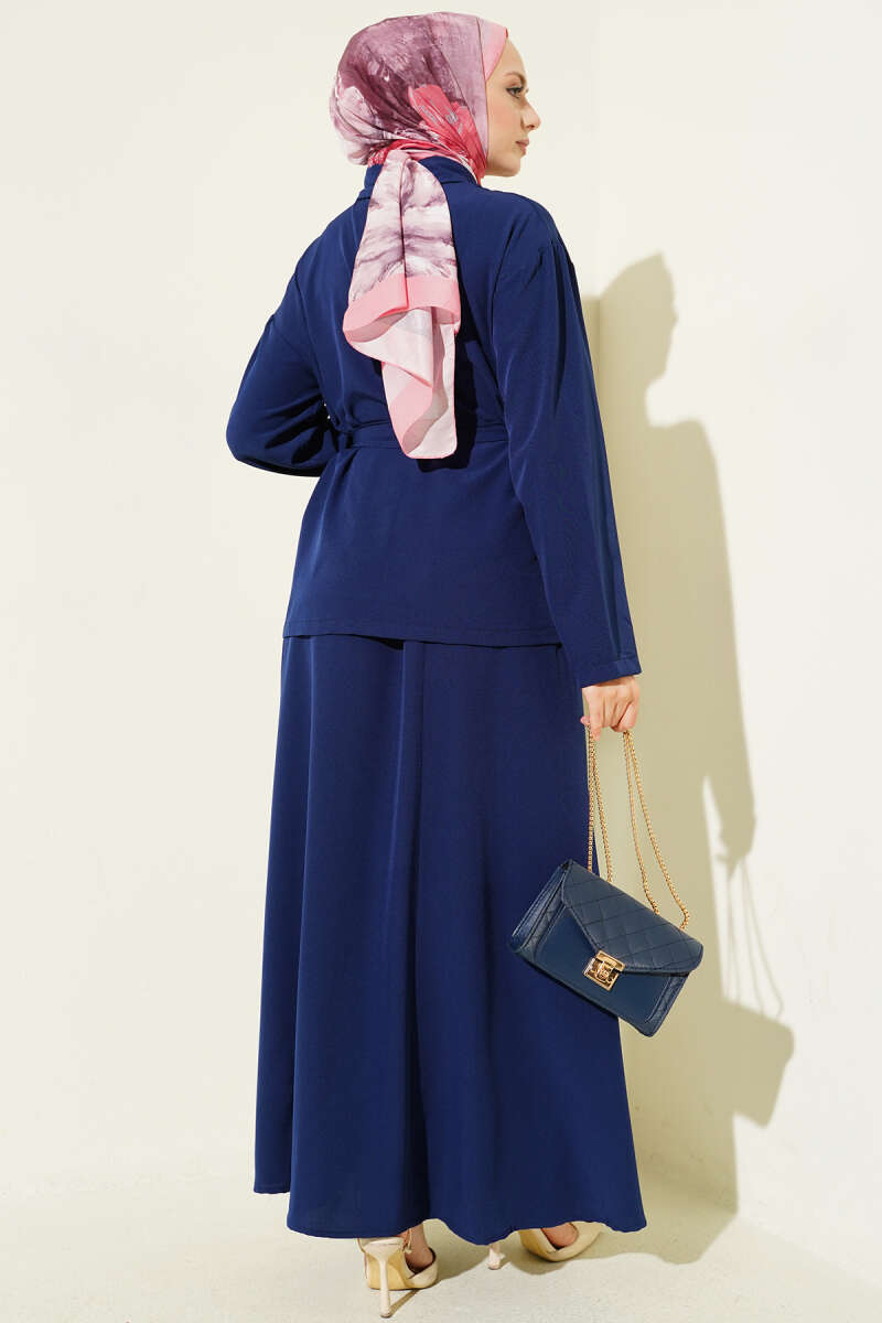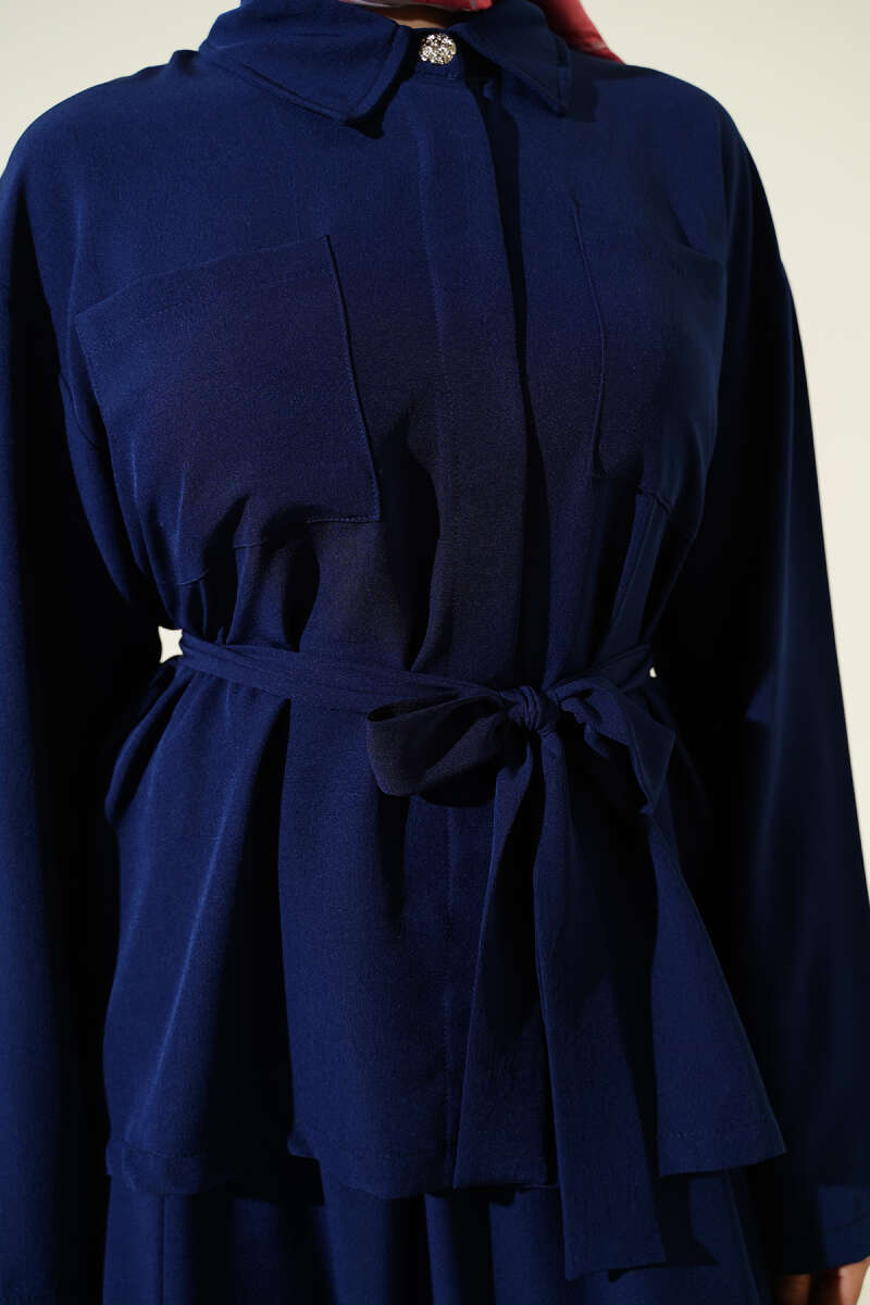 Mini Taş Süslemeli Kuşaklı İkili Takım Lacivert