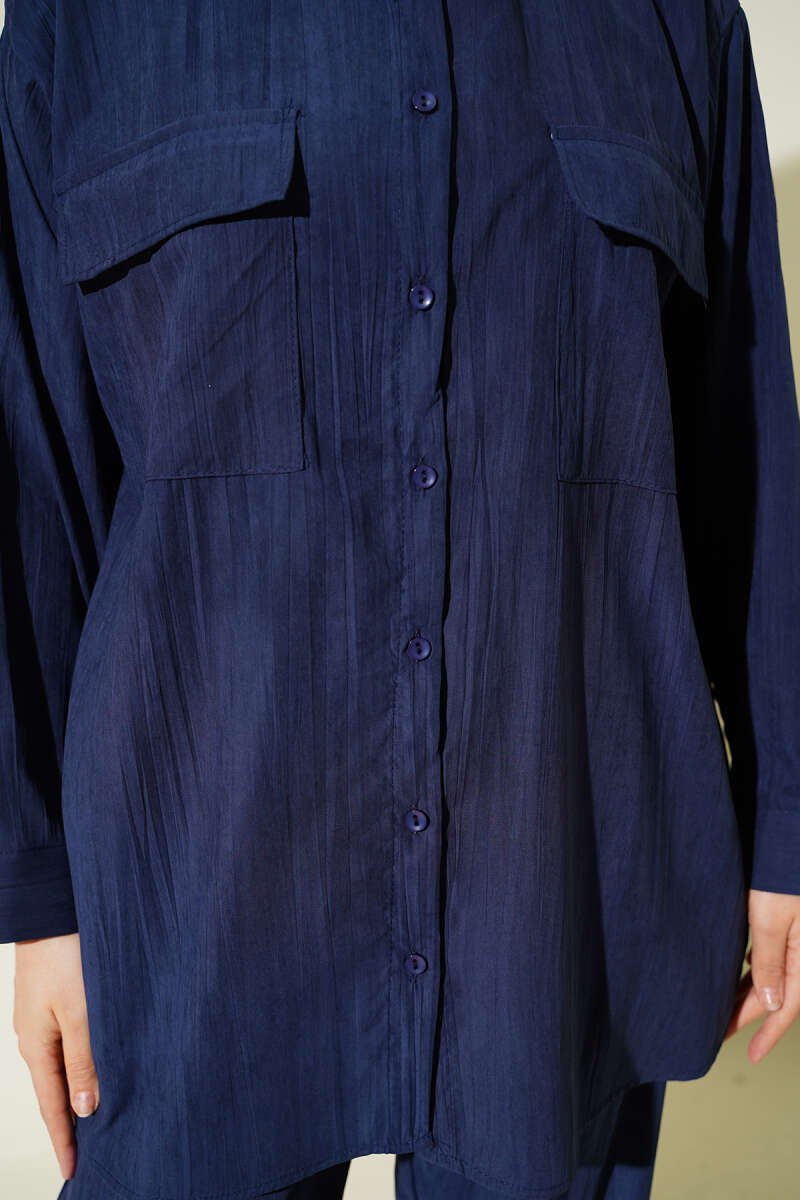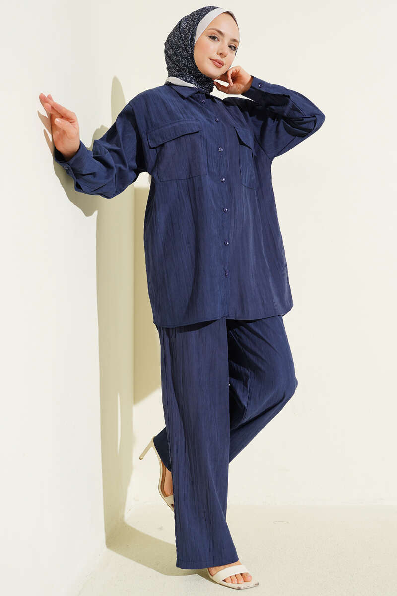 Çift Göğüs Cepli Modal İkili Takım Lacivert