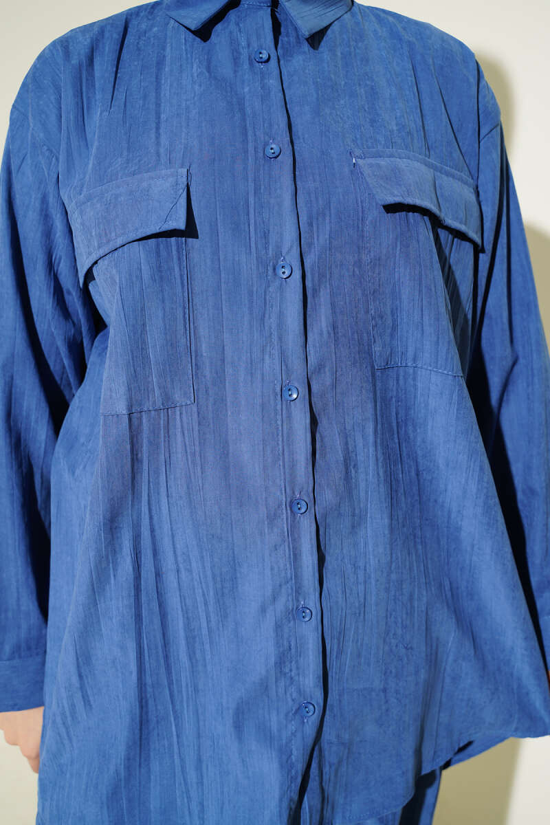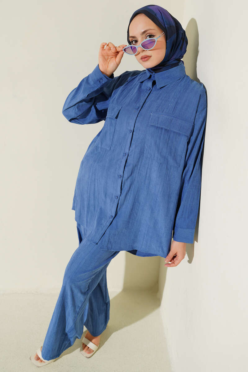 Çift Göğüs Cepli Modal İkili Takım Mavi