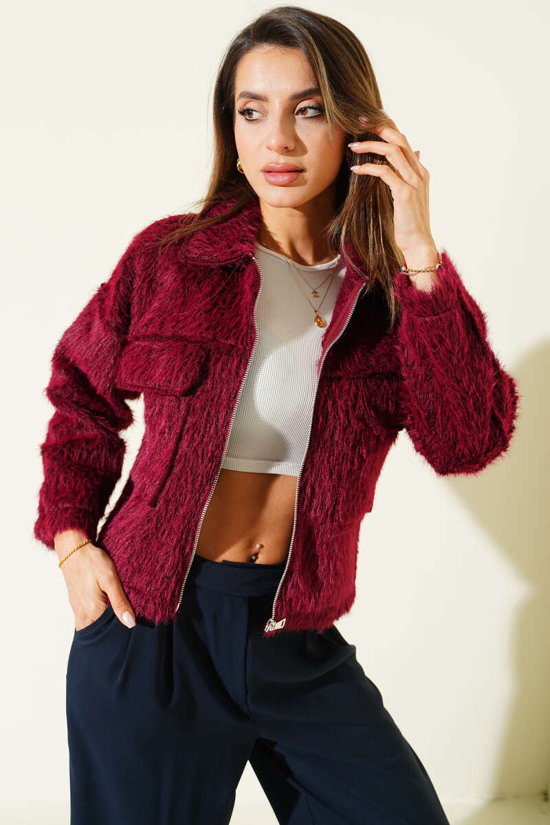 Yan Şeritli Fermuarlı İkili Takım Bordo