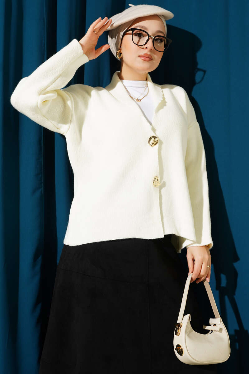 Taşlı Fermuarlı Kısa Triko Hırka Camel
