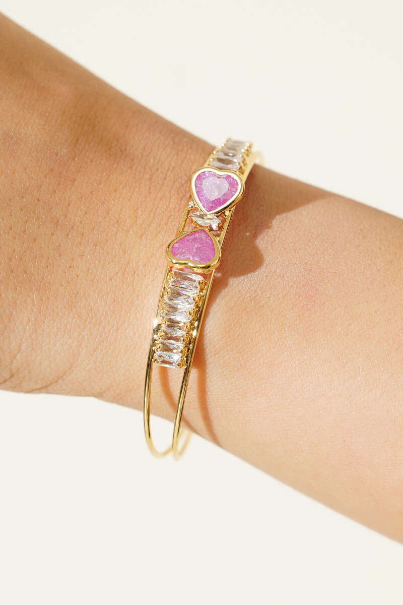 Çift Kalpli Taşlı Bilezik Mor