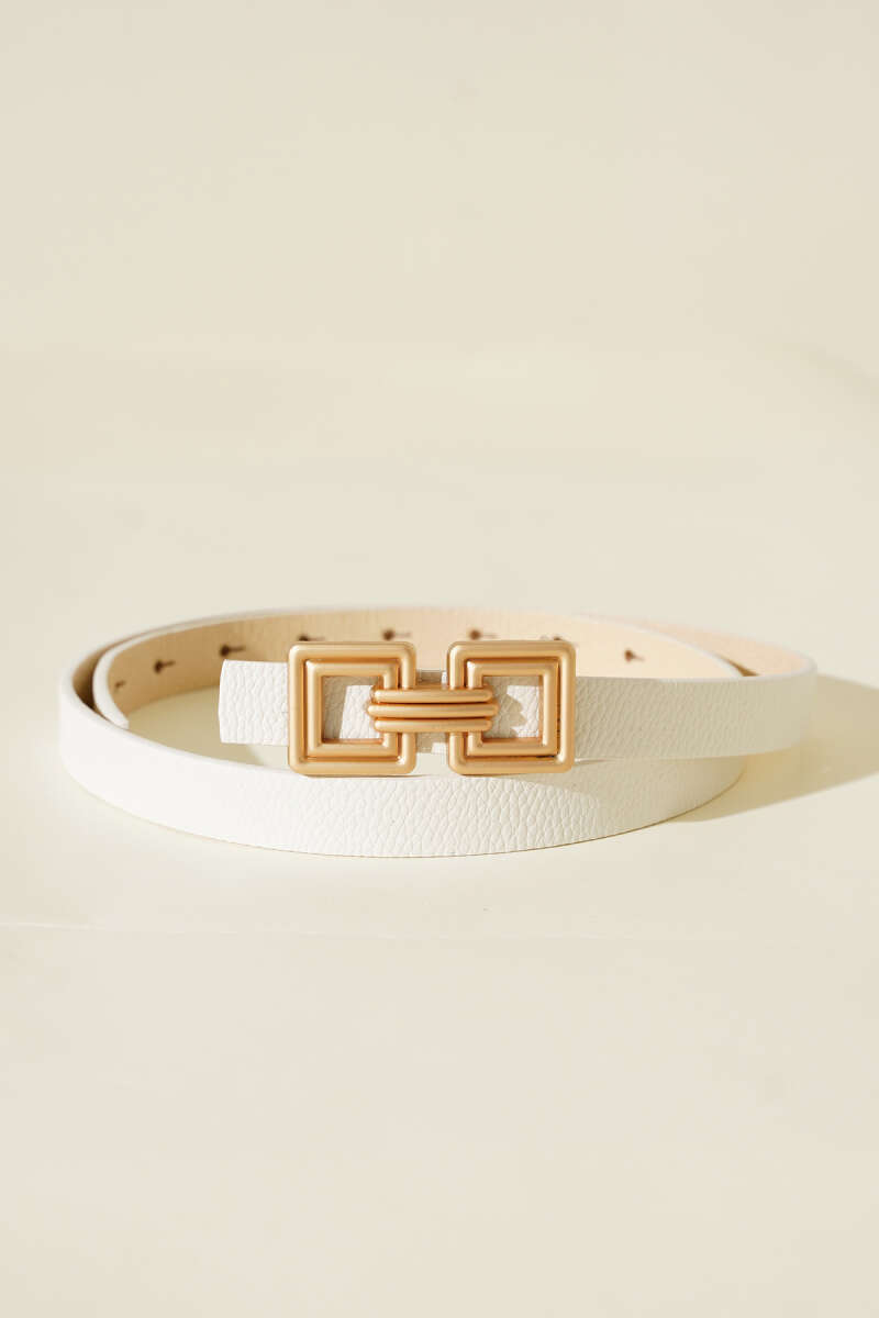Çift Kare Metal Tokalı Kemer Beyaz