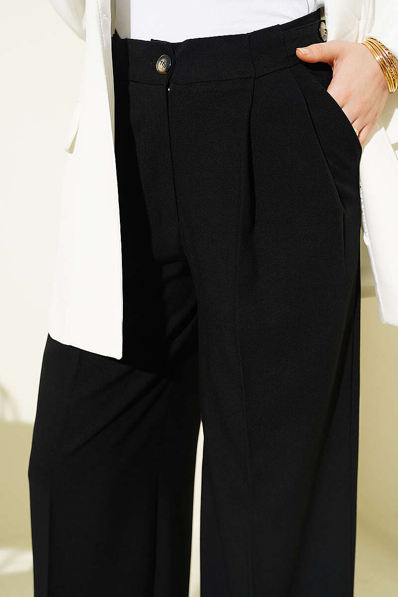 Çift Pileli Düğmeli Kumaş Pantolon Siyah
