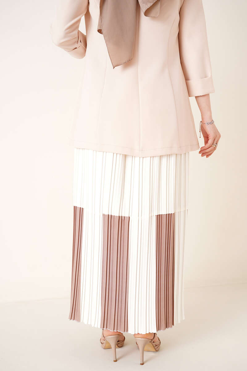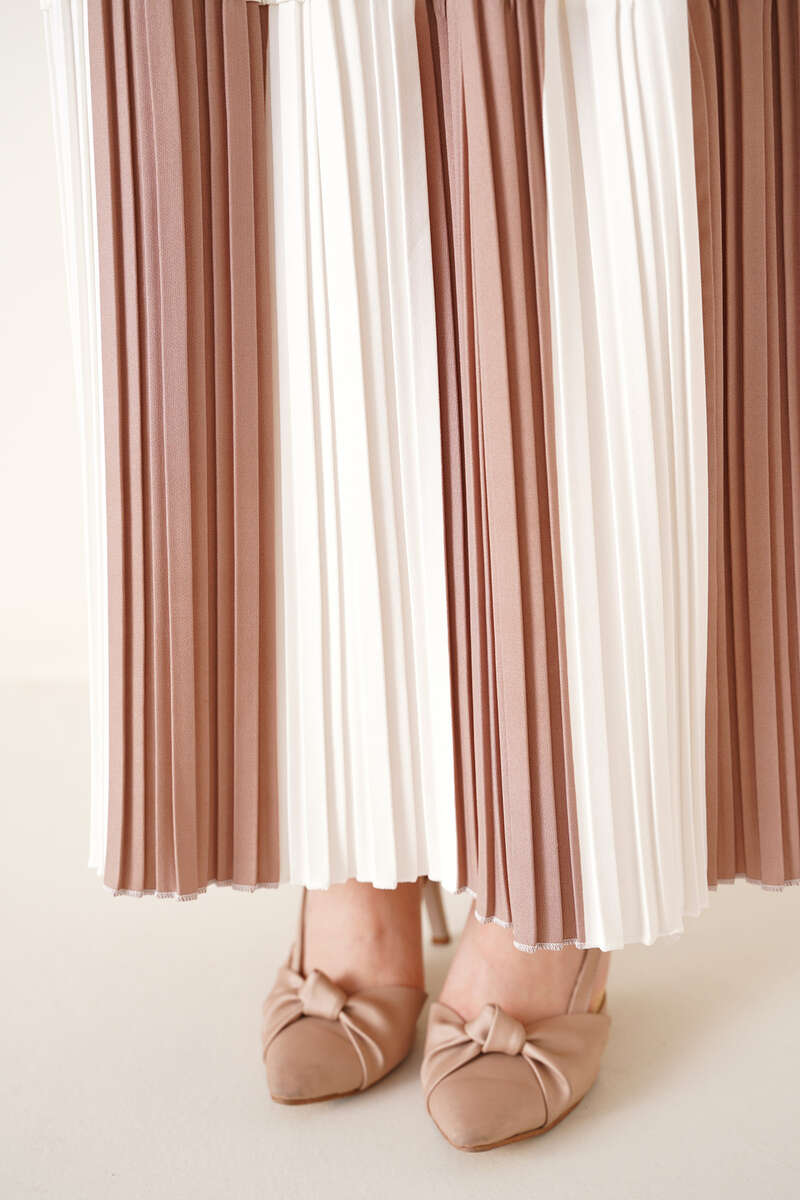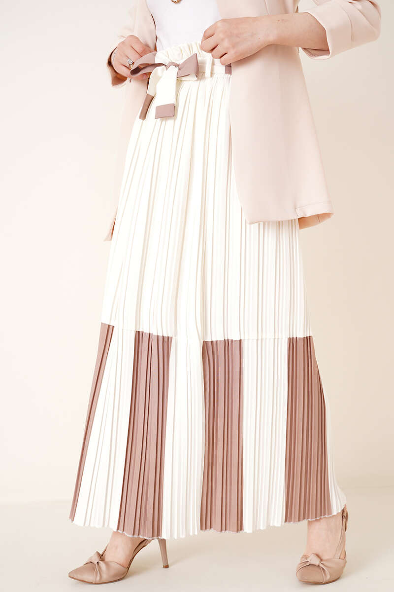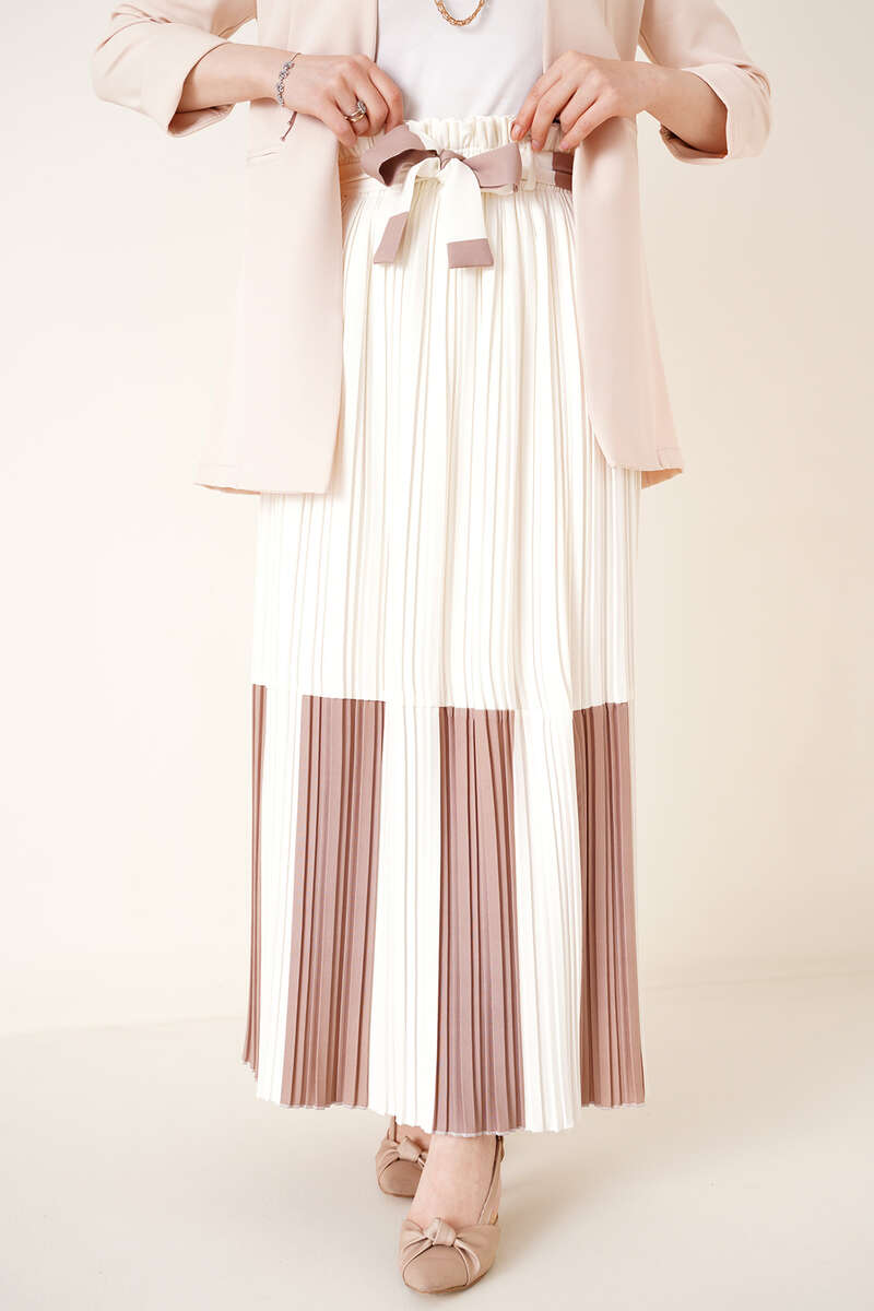 Yeni sezon eteğimiz dikkat çeken tasarımıyla sizler için geldi. Eteğimiz piliselidir. Çift renk detaylı tasarıma sahiptir. Kuşağı bulunmaktadır. Beli lastiklidir. İçi astarlıdır. Her kıyafetinizle rahatlıkla kombin yapabilirsiniz.